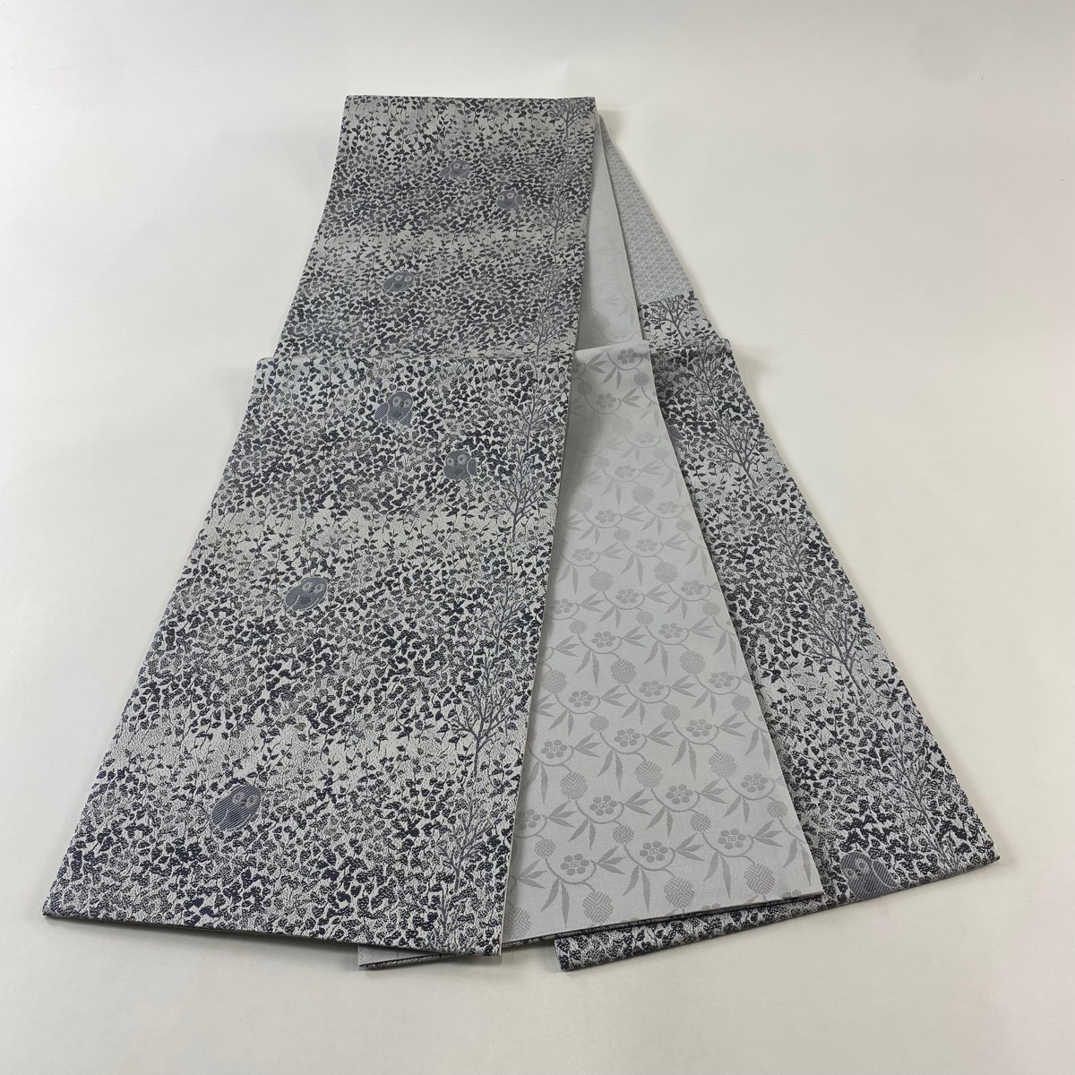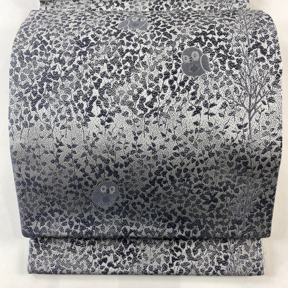 | 袋帯 美品 秀品 証紙 ふくろう 樹木 灰色 六通 正絹 【中古】 |