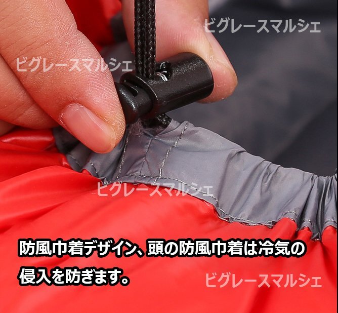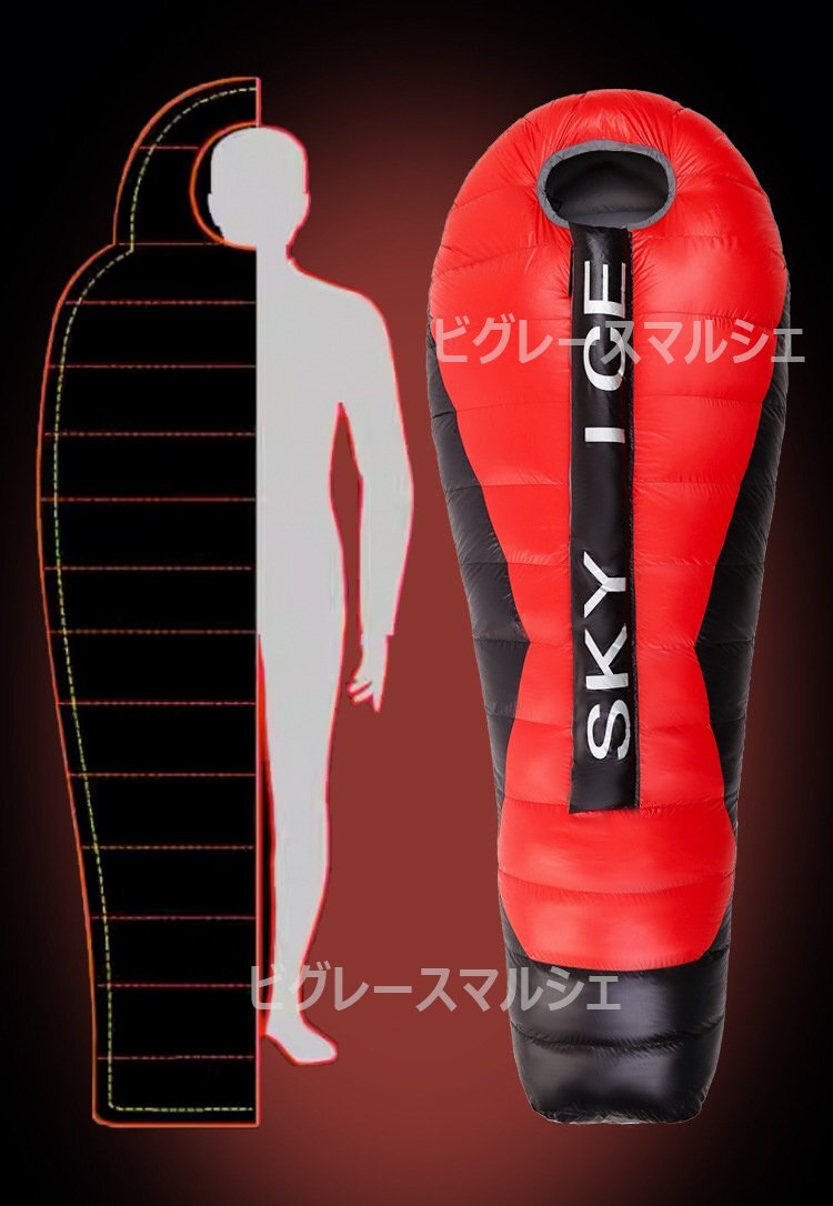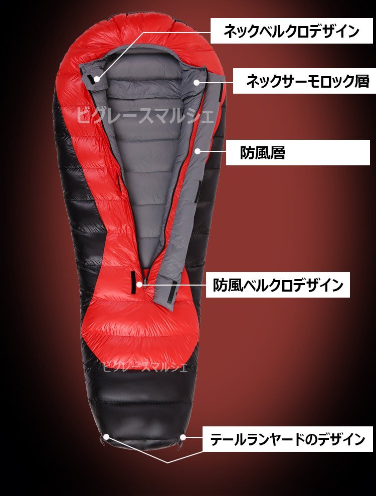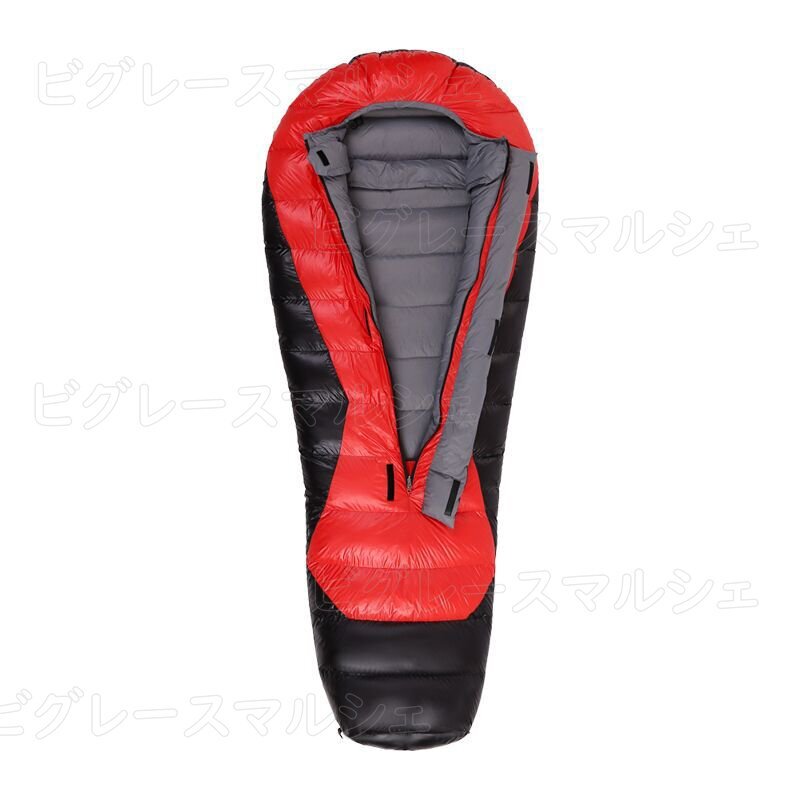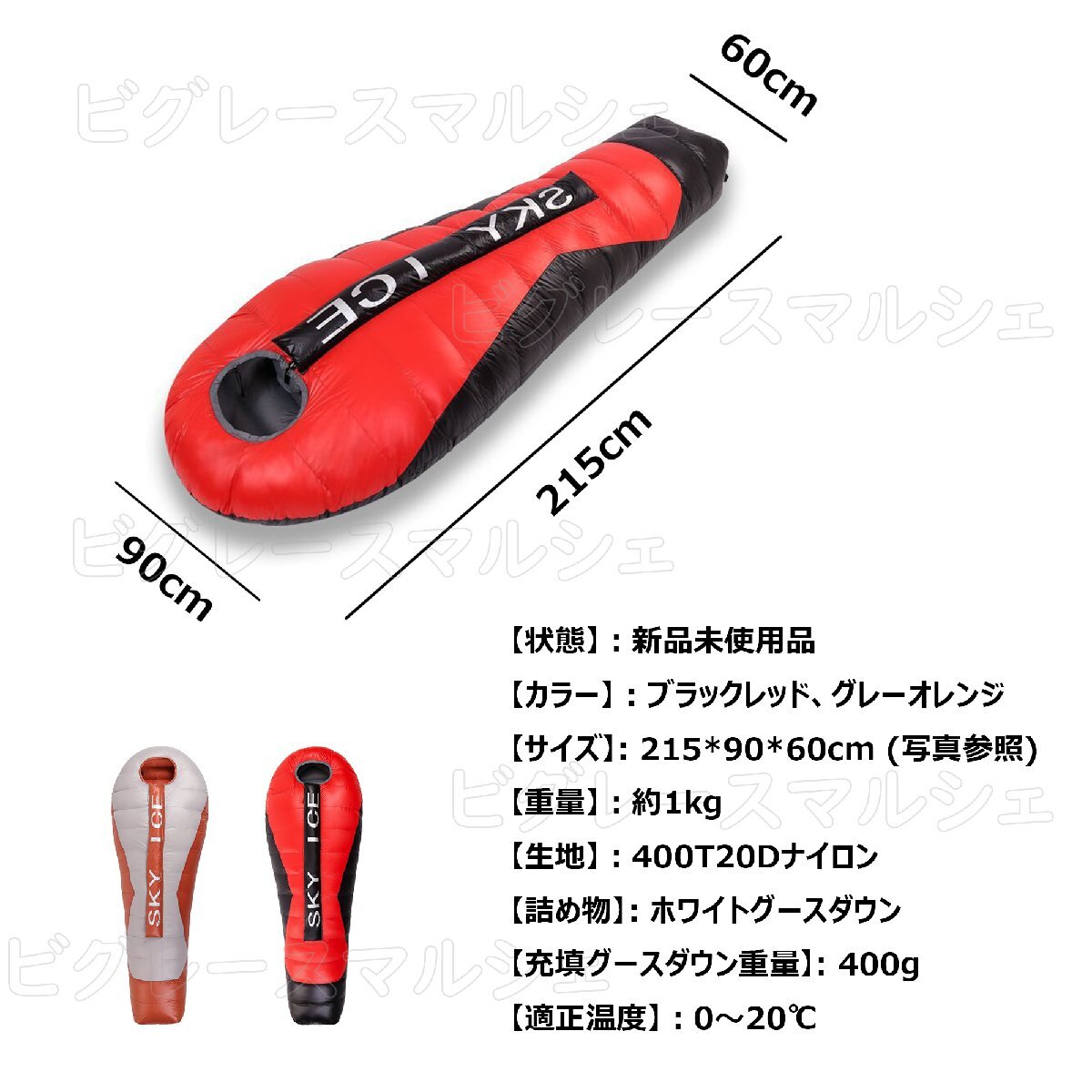 高品質 寝袋 グースダウン95% マミー型 冬用 羽毛 400T撥水加工 コンパクト アウトドア キャンプ 車中泊 400g ダックレッド hw1138re