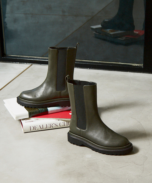 キーワード:ブーツ レディース サイドゴア プレーントゥ ミドル ローヒール 厚底 紐なし 秋 冬