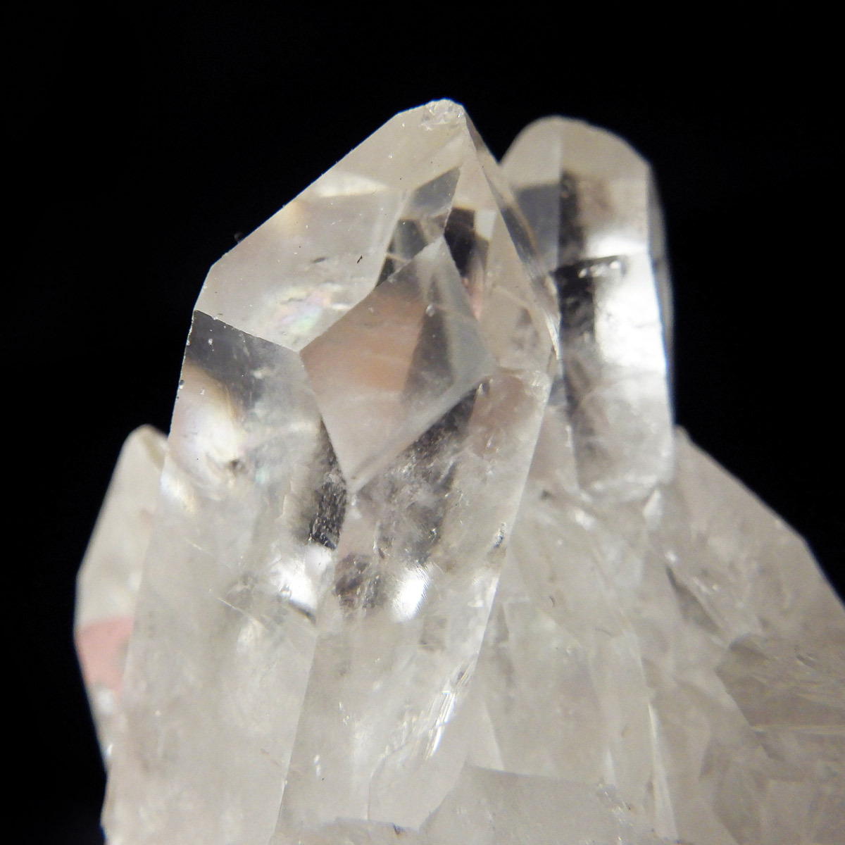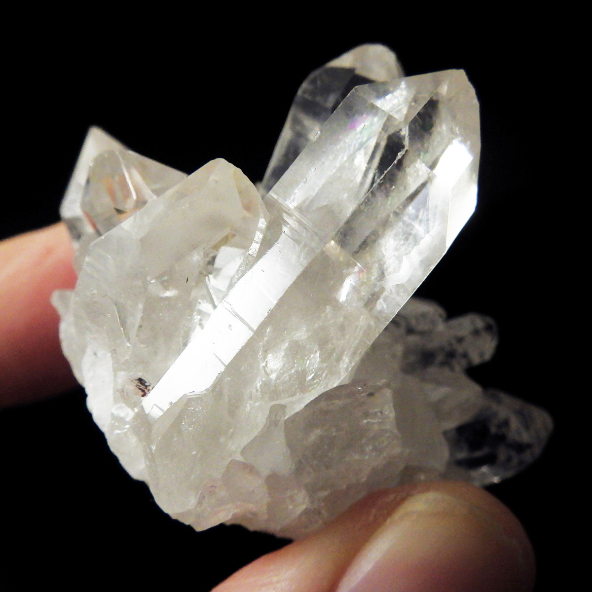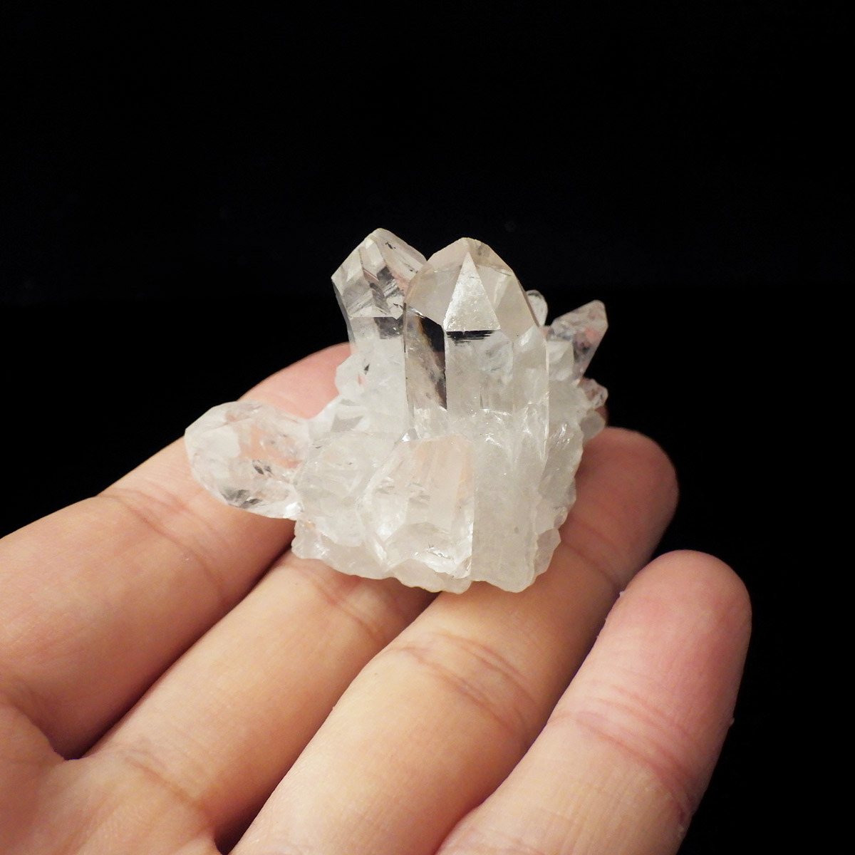 ブラジル トマスゴンサガ産 の水晶クラスターです。トマスゴンサガ産の水晶の特徴は、照りと艶。光沢が強いため、驚くほどキラキラとしています。また、水晶柱が放射線状に伸びて立体的な構造を作っているものが多く、「これぞ、水晶クラスター」という形状をしています。非常に透明度の高い大小様々な結晶が複雑に絡み合い、見る角度によって様々な表情を見せる大変美しいクラスターです。