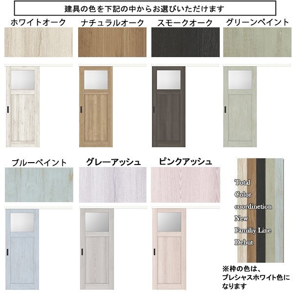 | 商品紹介 | ○ トステム (LIXIL) の室内建具 アウトセット片引戸 ラシッサD Palette ○ デザインP-LGJ ○ ダブルソフトモーション標準装備 ○ ノンケーシング * 色をお選び頂けます * 引手色をお選び頂けます * 引込勝手をお選び頂けます * ガラスの種類をお選び頂けます * オプション・錠を追加できます。(シリンダー錠はカギが3本セットで付きます) * オプション・片面化粧額縁セットを追加できます。 * オプション・入隅用縦部材を追加できます。 * オプション・バーハンドル(片側)に変更できます。 * 同時に複数セット、お買上げ頂けますと、送料の値引を致します。 違うサイズ(違う種類)との組合せでもOKです、是非お問合せ下さい。 |