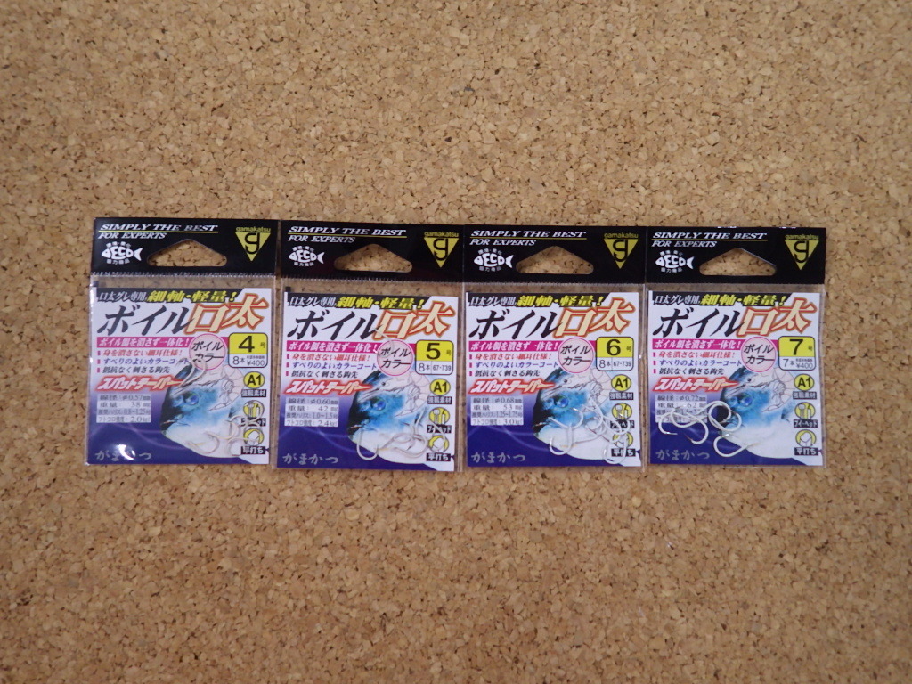 ☆ご覧下さり誠にありがとうございます!「本日限り!激安スタート★激特!新品☆『がまかつ・ボイル口太』4号&5号&6号&7号x各1、計4セット」①のご紹介です!