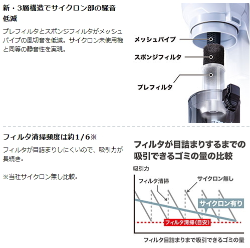 サイクロン未使用機と同等の静音性を実現します