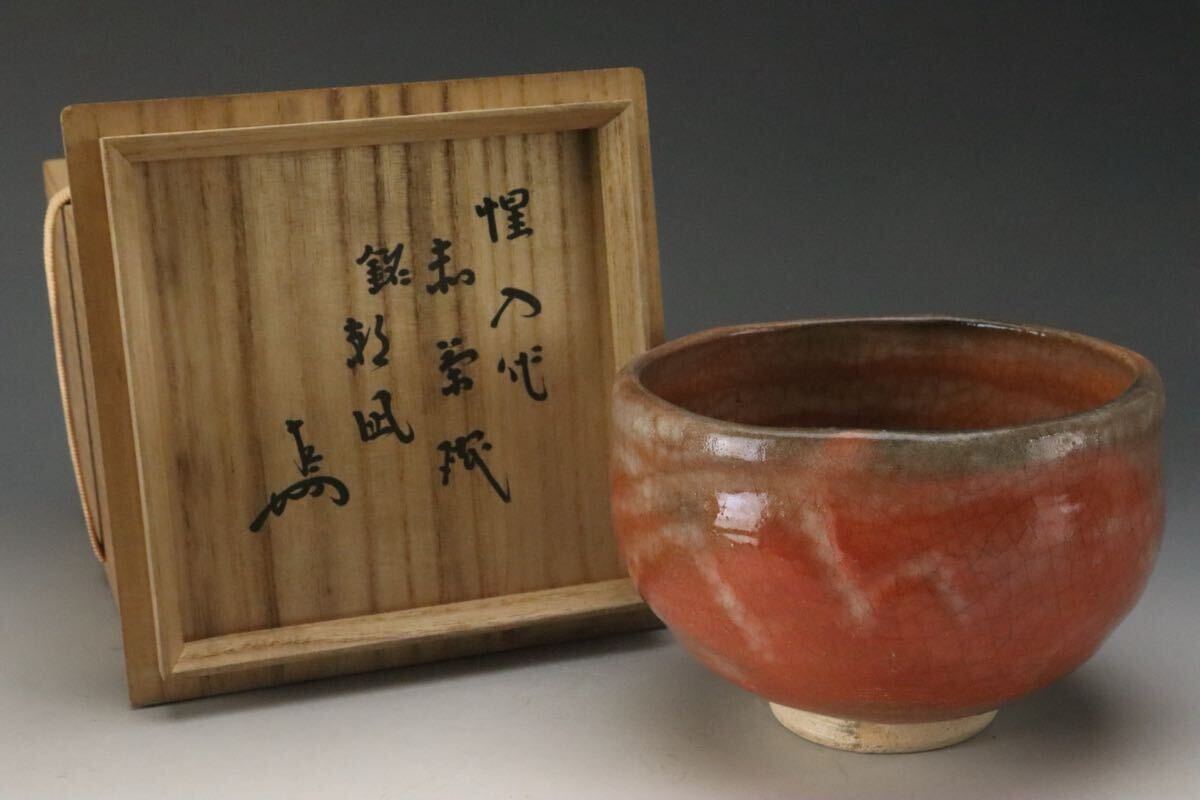| 楽吉左衛門 惺入作 赤茶碗 即中斎 書付 銘[朝凪]花押 書付箱 |