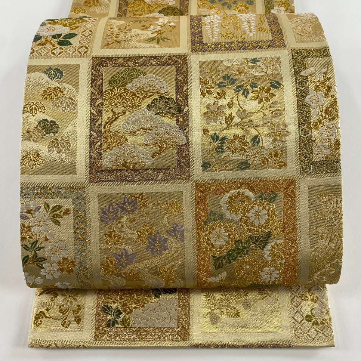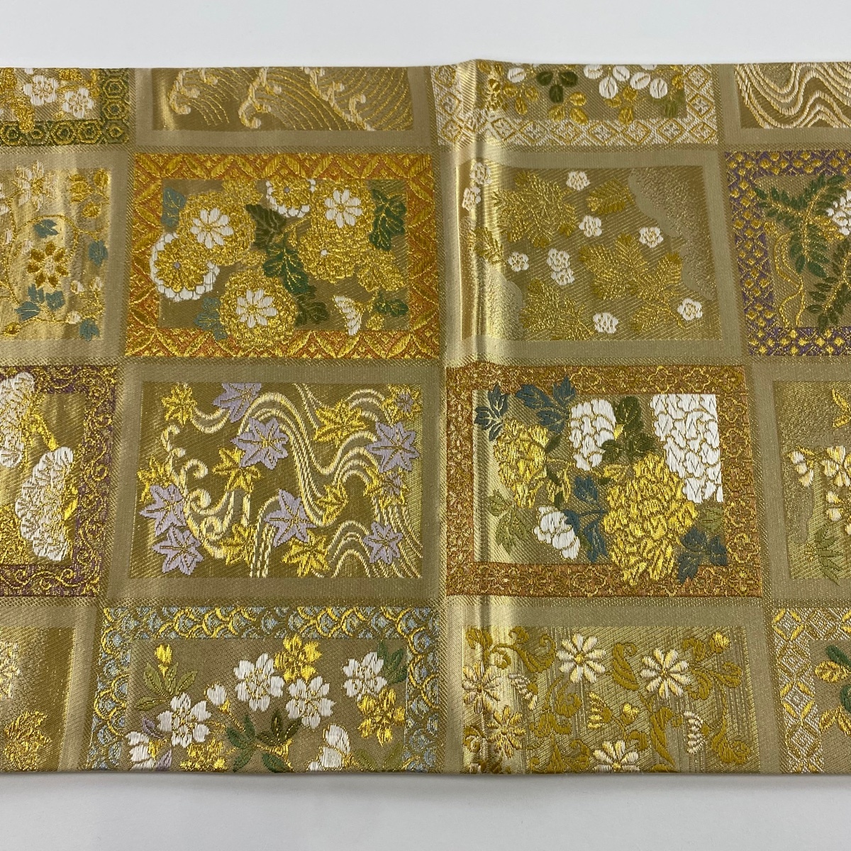 | 袋帯 美品 秀品 色紙 草花 金糸 箔 金色 六通 正絹 【中古】 |