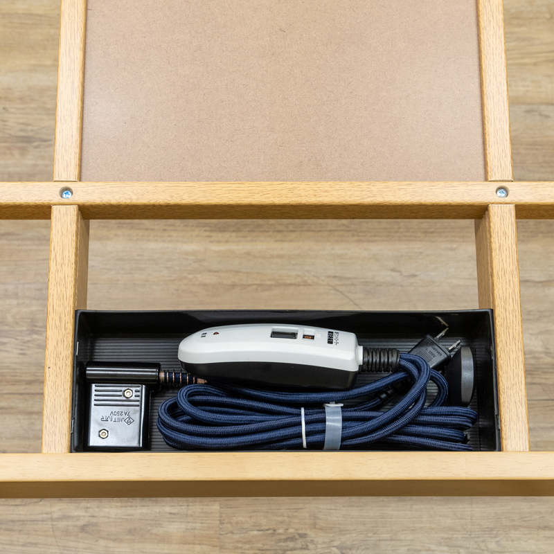 | 材質 | 天板:オーク柄化粧繊維板(UV塗装)、 脚・幕板:天然木ラバーウッド(PU塗装) 600Wハロゲンヒーター(コード3m、手元コントローラー) |