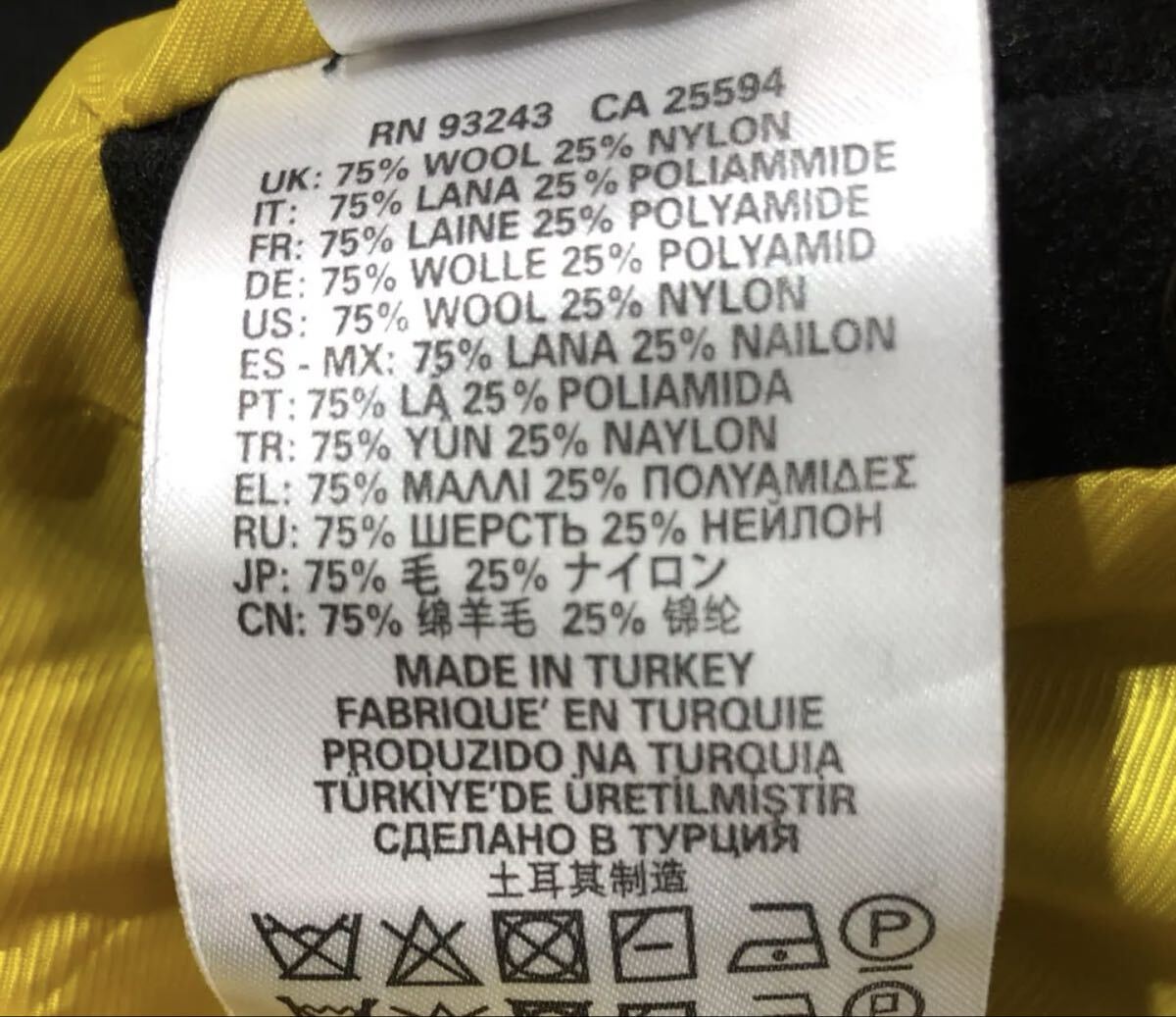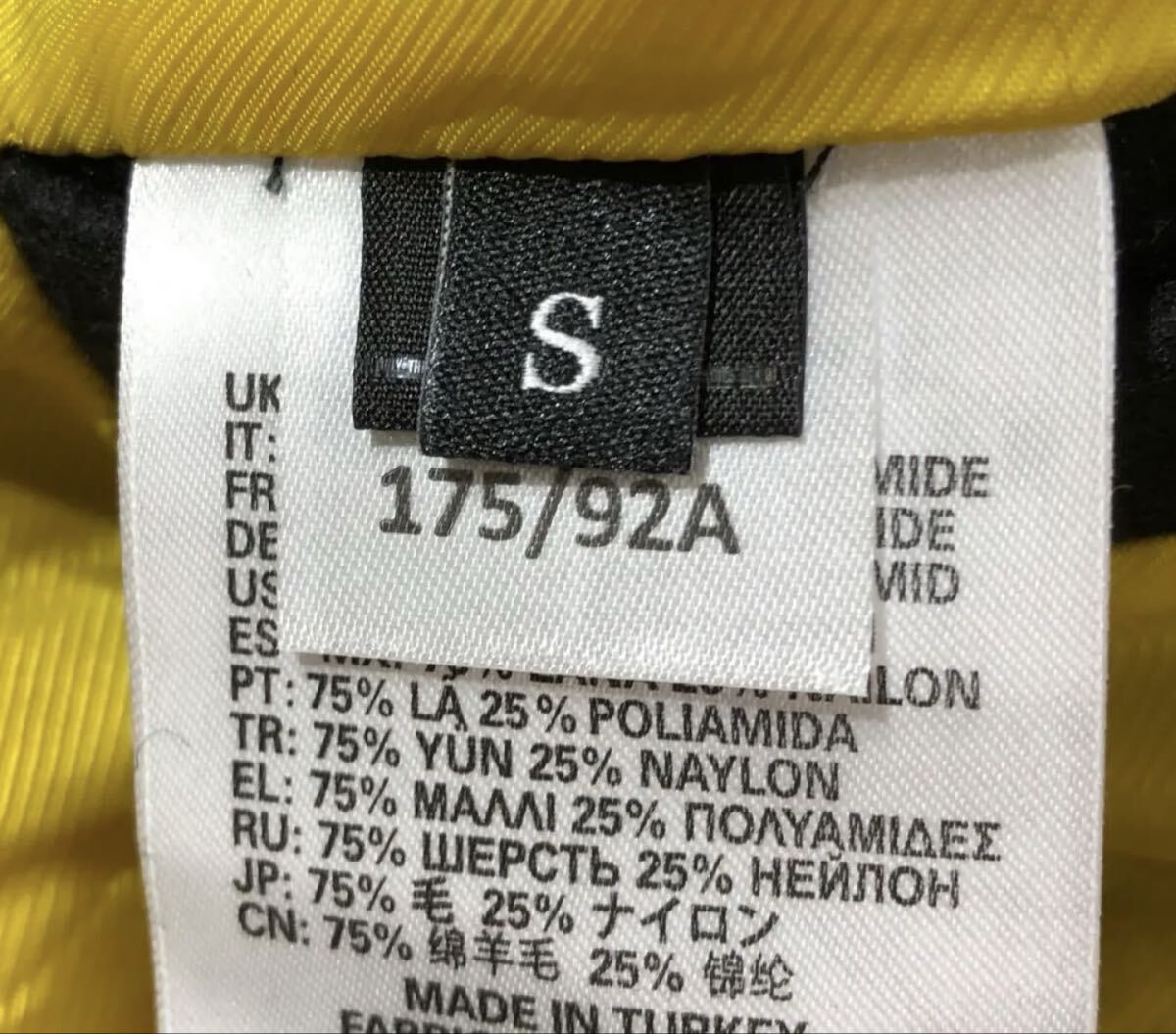 素材 【 表地-毛75%ナイロン25%/裏地本体-ポリエステル/袖-ポリエステル 】