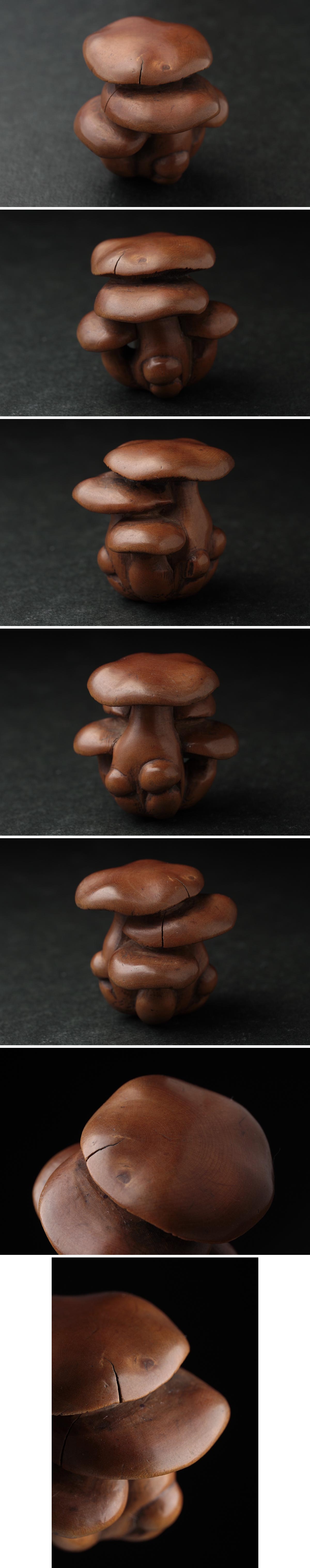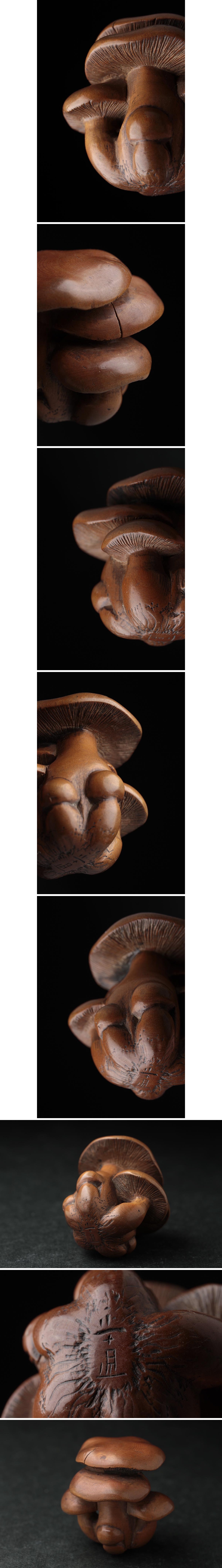 | ◆ 江戸時代【伊勢 正直 作】古柘植/黄楊木彫「しめじ茸」根付・きのこ根付 古根付 提げ物 印籠 煙草入 装飾具 古美術 ◆
