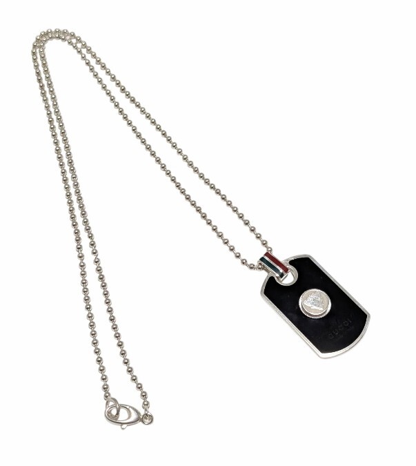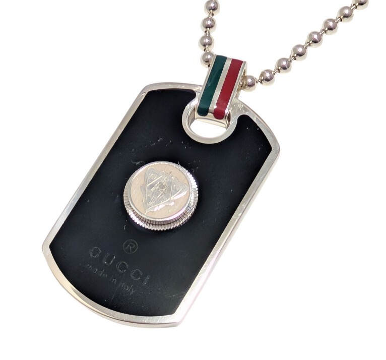 グッチ ネックレス ドッグタグ ペンダント クレスト ブラック シェリーカラー シルバー SV925 GUCCI 【中古】
