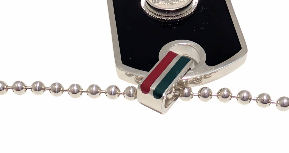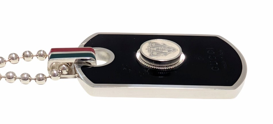 コメント・・・グッチのクレストモチーフの付いたドッグタグペンダントの入荷になります☆シェリーカラーも入ったGUCCIらしいスタイリッシュなネックレスです♪男女を問わず着用頂けるオシャレなペンダントです◎