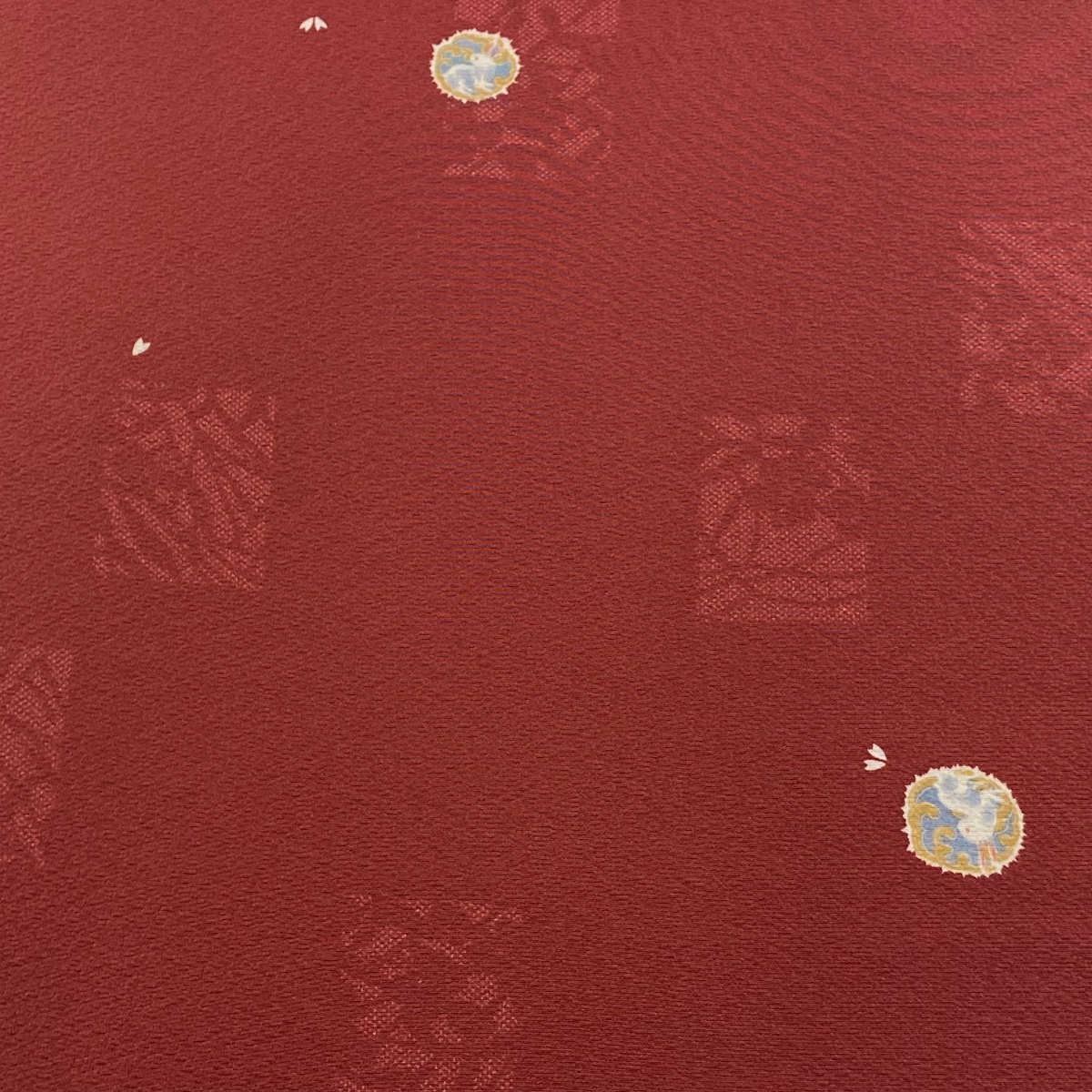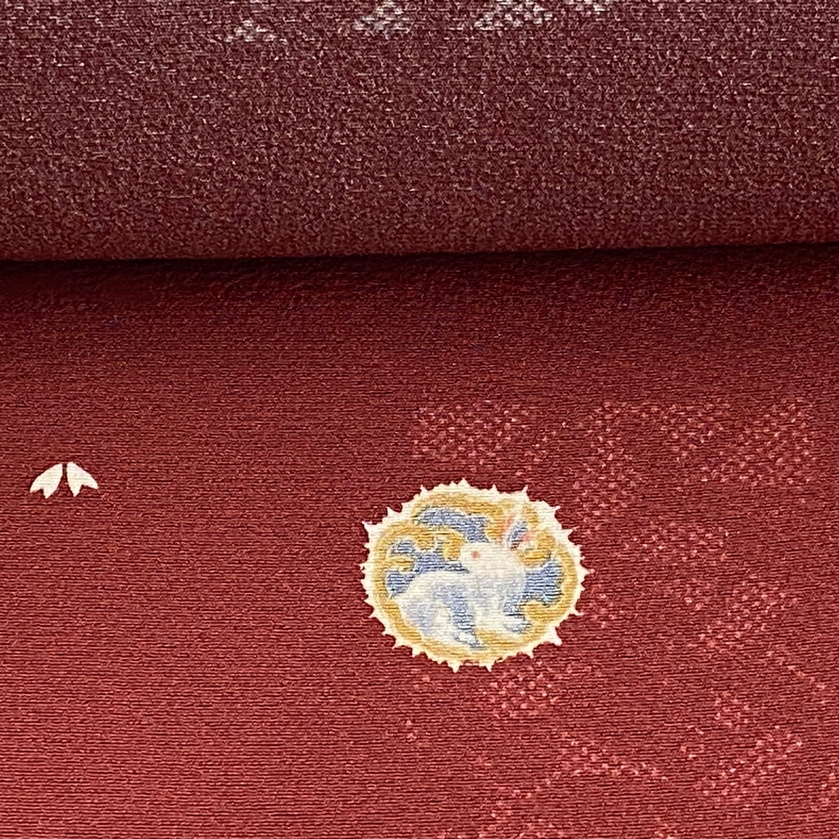 | 反物 秀品 小紋 ウサギ 草花 茜色 正絹 【中古】 |