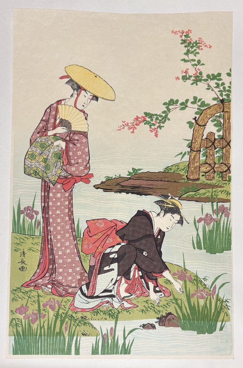 【真作】鳥居清長「菖蒲の池 /21」木版 アダチ版画 浮世絵 復刻 錦絵【日本が世界に誇る木版画 woodblock print】