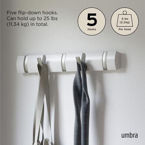 【umbra】 フリップフック FRIP HOOK シャインホワイト 5HOOK 壁掛けフック 収納