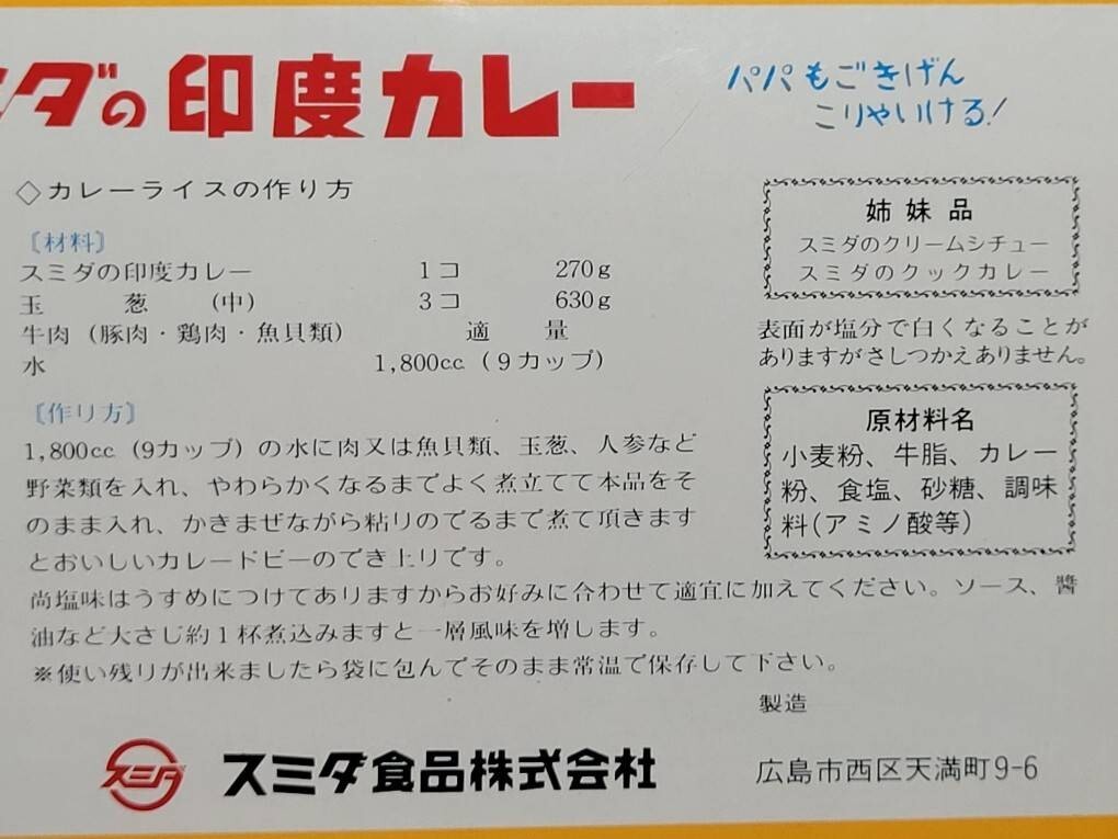 ②広島県スミダ食品 昭和40年代にヒットしたカレールー「スミダの印度カレーの箱」現在廃業