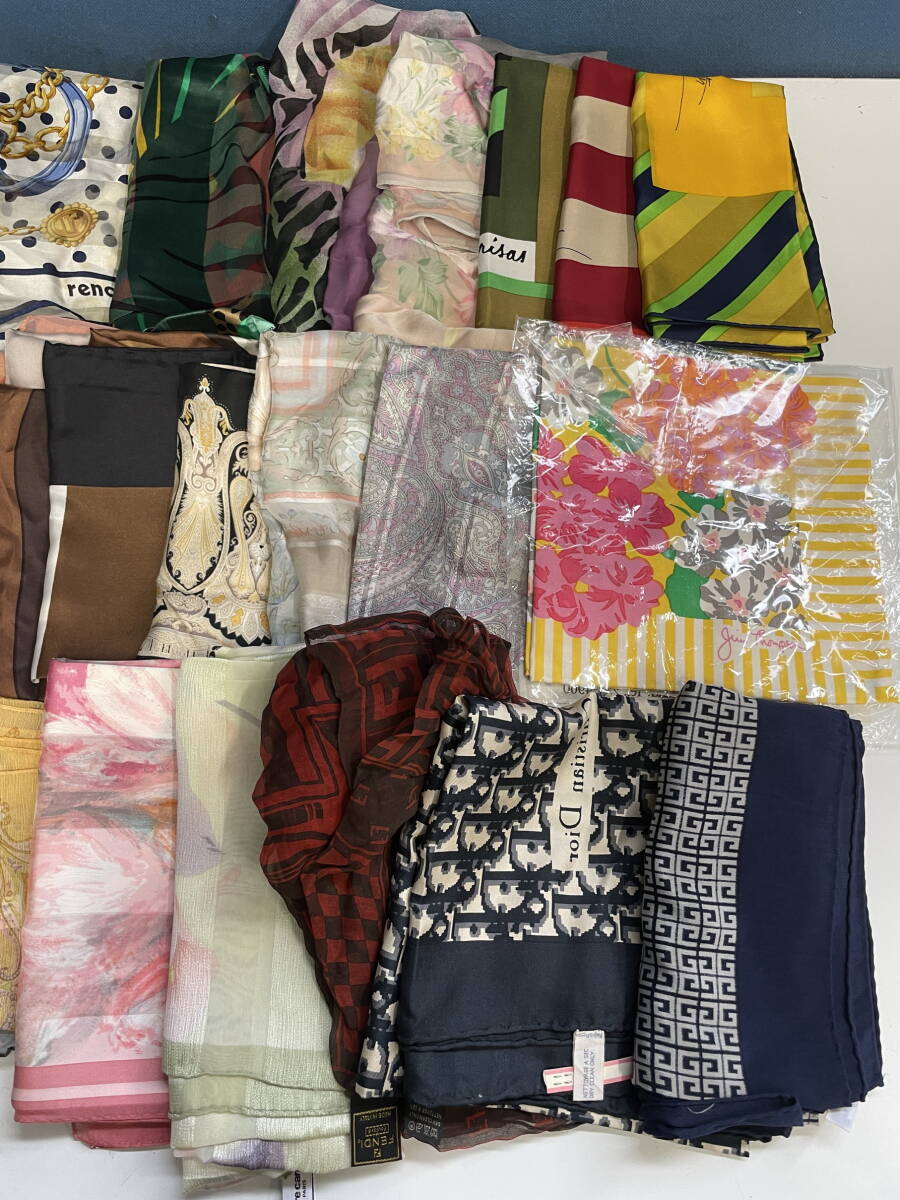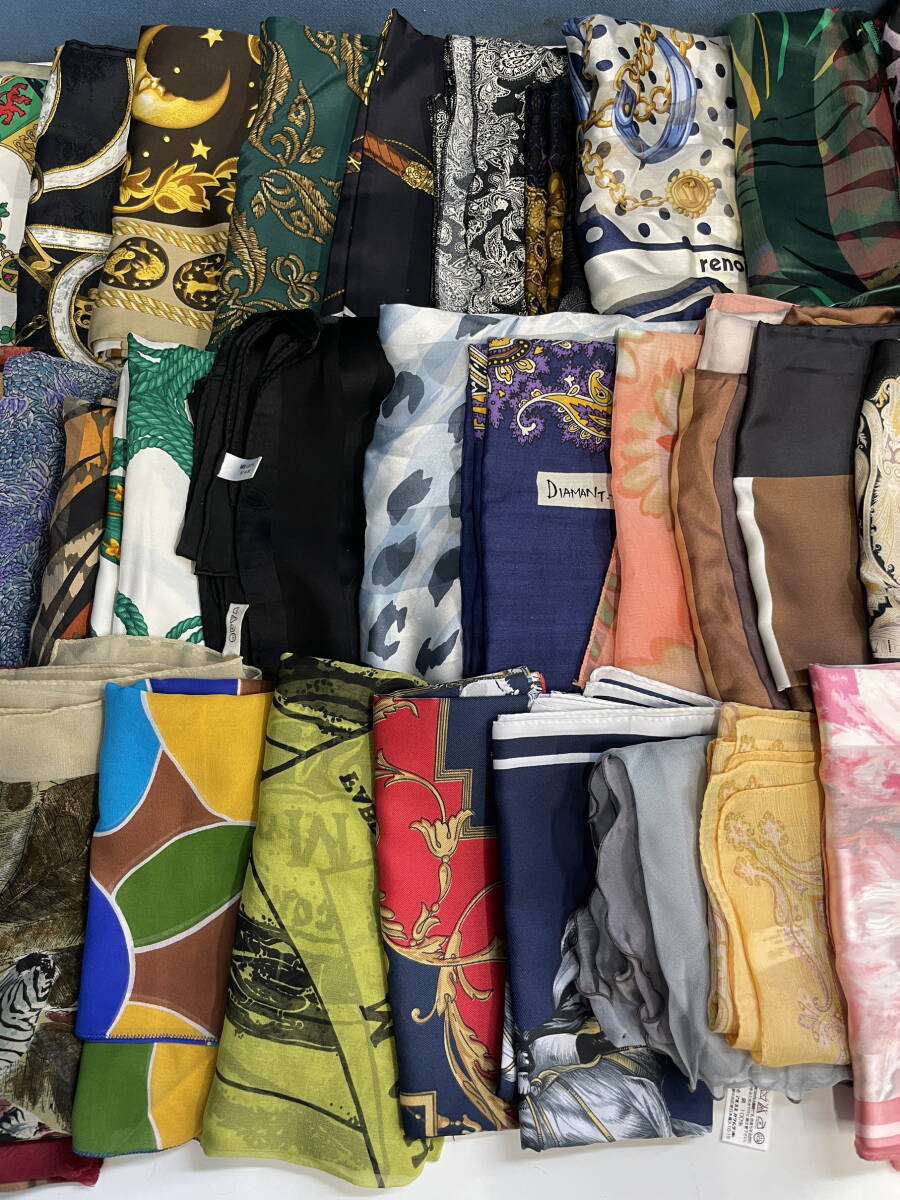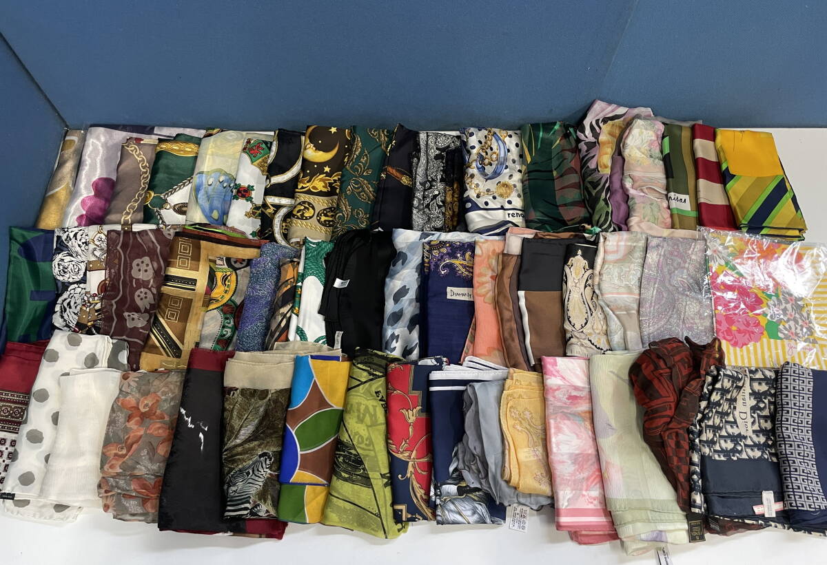 11-B26/2-80 スカーフ まとめて 約58点セット 未使用あり ブランド品込み 総柄 花柄 CELINE Dior FENDI GIVENCHY 他 | |||