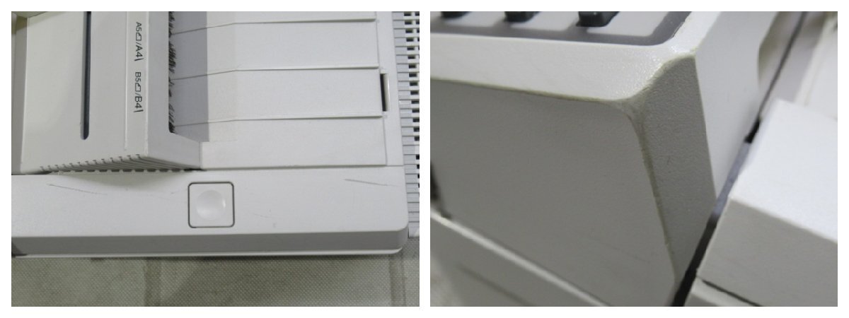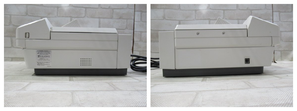 【 カ 】 ランク 本商品は中古品となります。 写真では分かりにくいキズ・汚れ・欠けなどの使用感があります。 予めご理解・ご了承頂きますようお願い致します。 キズや落ちない汚れ、日焼けによる黄変があります。 紙を押さえる透明パーツがありません。 テスト印字・初期化済みです。 印字枚数/1310・読取枚数/1536枚となります。 付属品は1枚目の写真にてご確認ください。 感熱紙はテスト印字で使用したものが付属いたします。 ご希望のお客様には中古ハンドセット¥1650(税込)もご用意出来ます。 取引メッセージにてお問い合わせください。 ※ 当機種は保管中に経年で黄変が進行しやすい商品になります。 お渡しの際に変色が進んでいる場合があります。