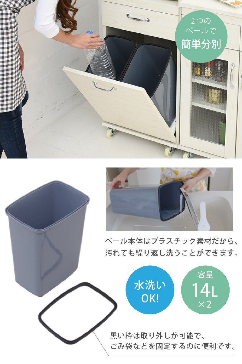 | ■商品説明 木目調とガラスのカントリーテイストが可愛いリュッカランドのキッチンシリーズ。斜め開閉の下部には付属のペールが2つ収まる収納部を完備!ゴミの分別もばっちり。 |