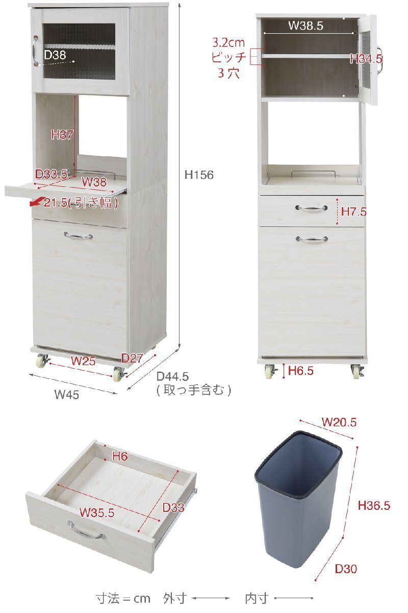 | ■本体サイズ [外寸]幅45×奥行44.5×高さ156cm |