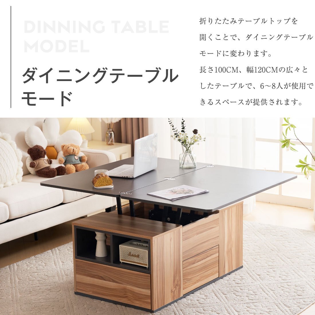 迅速配送・テーブル センターテーブル 昇降式テーブル 高さ調節可能 幅100 折りたたみ 天板昇降 引出し 多機能 ダイニングテーブル