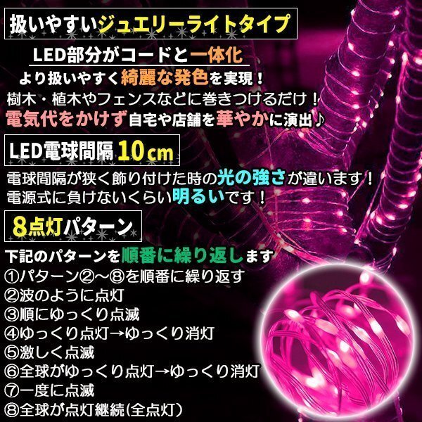 ソーラー イルミネーション 屋外 クリスマス ジュエリー屋外用 イルミネーションライト 300球 ピンク