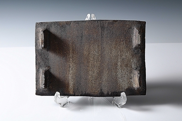 SP1650 石原稔久 父 石原祥嗣 黒刷毛目 足付皿 板皿 角皿 工房 一石 検) ほぼ日 百草 ももぐさ