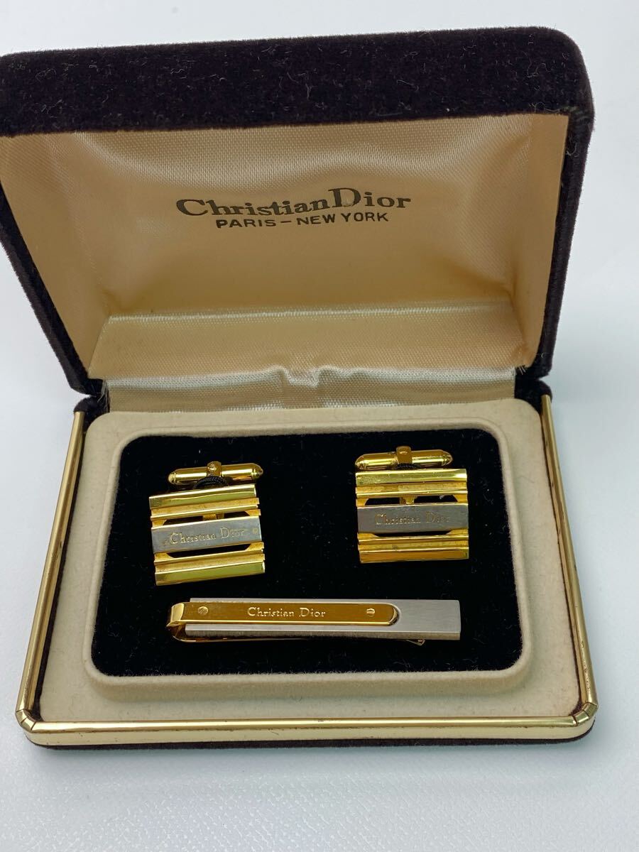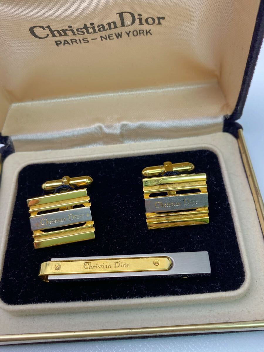 P047 Christian Dior クリスチャン・ディオール ネクタイピン カフス セット 箱付き