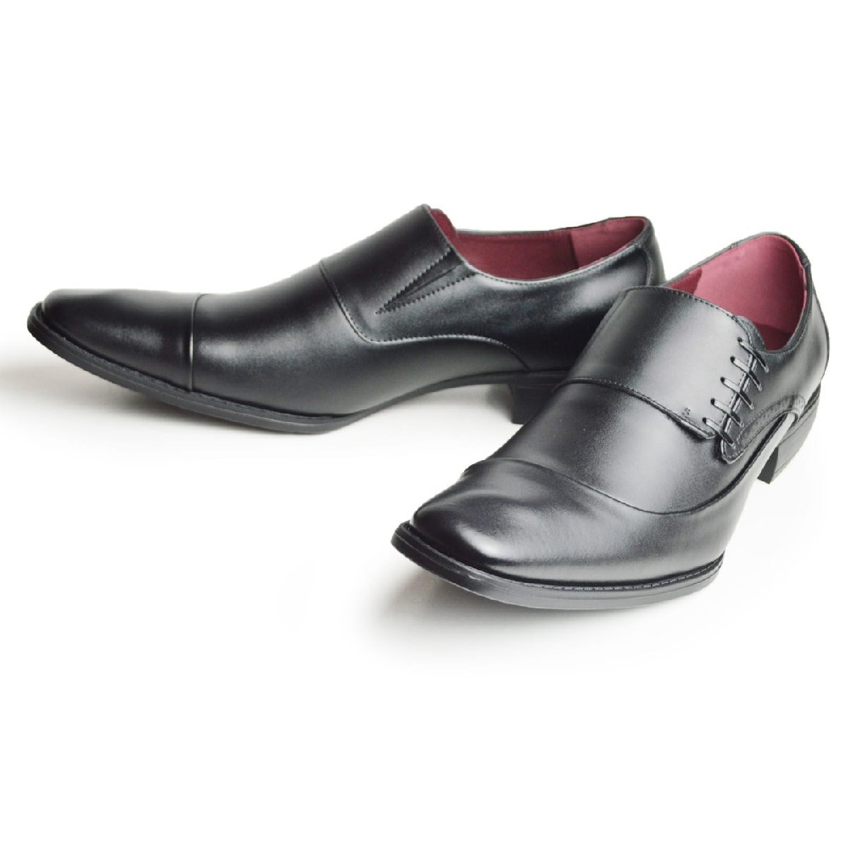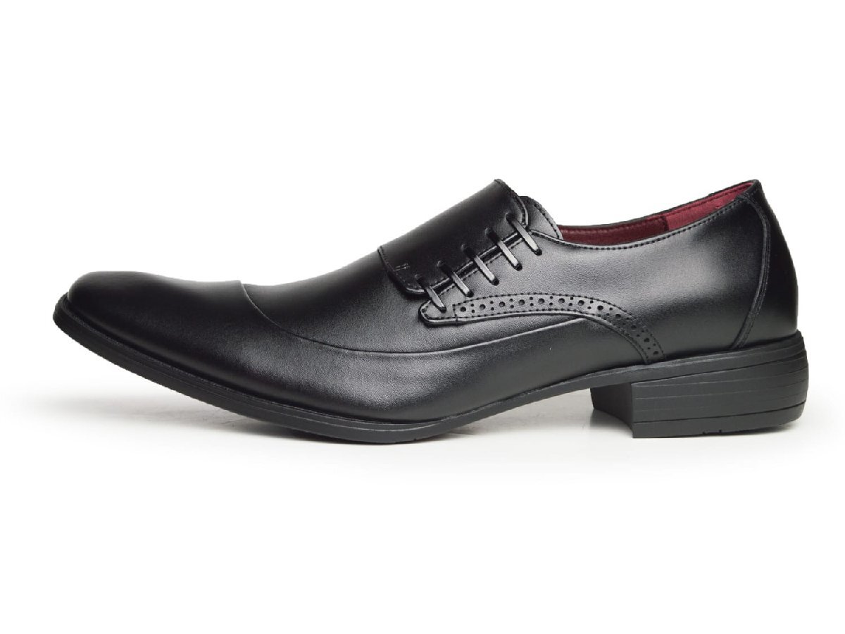 新品■25cm ビジネスシューズ 革靴 レースUP 飾り紐 ストレートチップ 脚長 スクエアトゥ ロングノーズ 2E 日本製 フォーマル 紳士靴