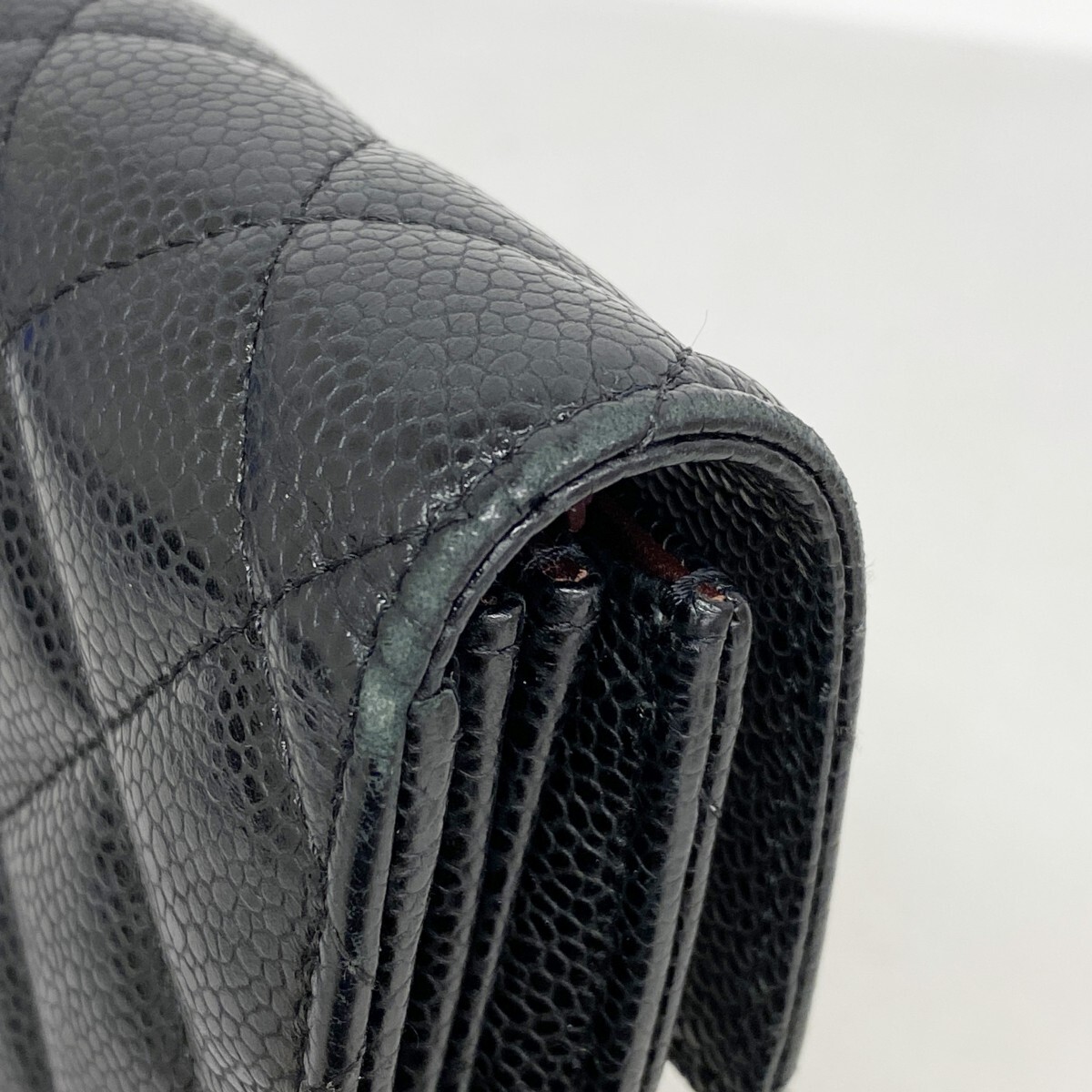 【5me6468】シャネル 長財布 マトラッセ キャビアスキン ブラック ゴールド金具【中古】レディース