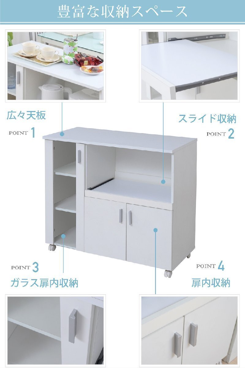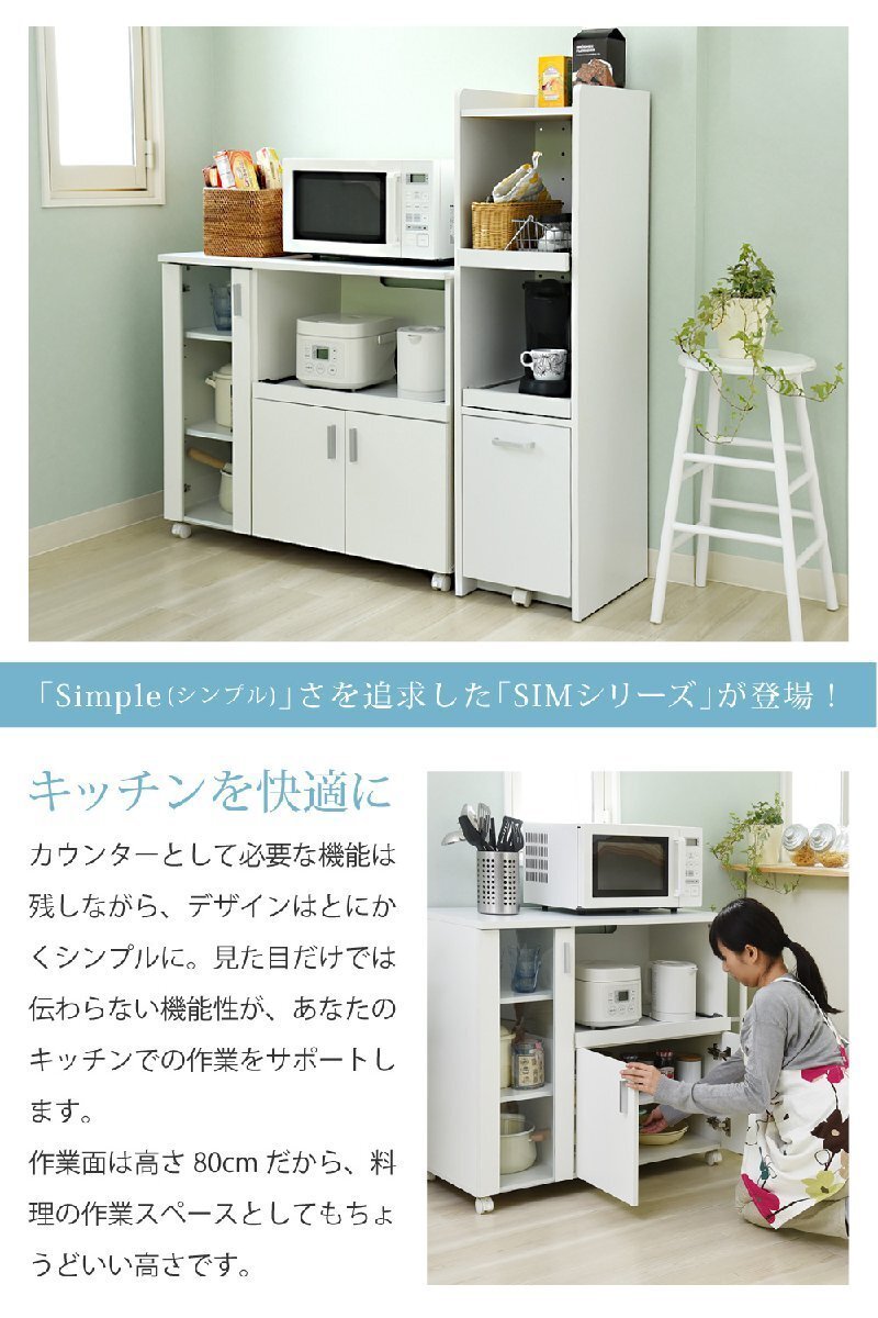 | ■商品説明 シンプルなSIMシリーズのカウンター。コンパクトでキャスター付だから、女性でもコロコロと簡単移動。ガラス扉内にオシャレな食器を収納すれば、見せる収納が出来ます。 |