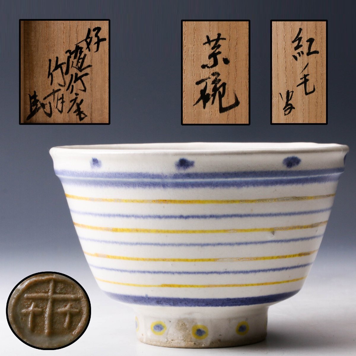 【佳香】叶三十 オランダ写茶碗 薮内流随竹庵六代竹有宗匠書付箱 茶道具 本物保証