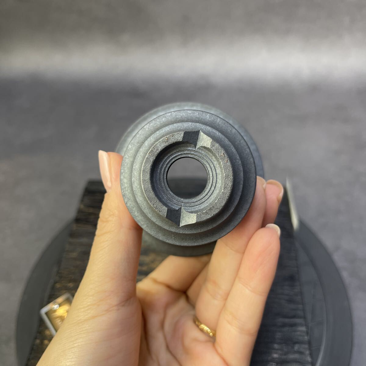 工業的な造形の中に、手仕事の温もりと偶然の美を宿した一点もの。