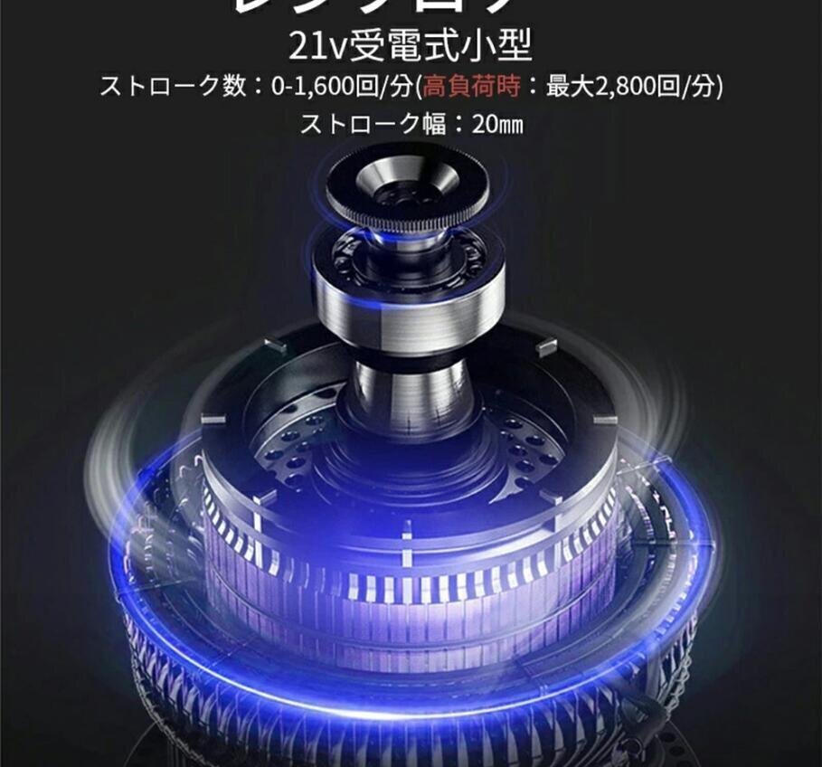 充電式レシプロソー 電動のこぎり コードレスレシプロソー 小型 軽量 無段変速 2個バッテリー・充電器・ケース付 替え刃4枚付き 切断作業