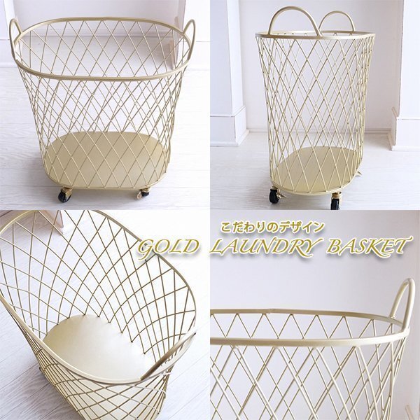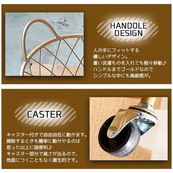 ランドリーバスケット ランドリーワゴン キャスター 洗濯カゴ 脱衣所 洗面所 脱衣かご 洗濯物 ランドリー ゴールド おしゃれ おもちゃ 収納