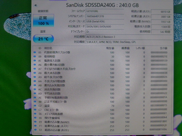SanDisk SSD SATA 2.5inch 240GB 4台セット 正常判定 中古品です SDSSDA-240G