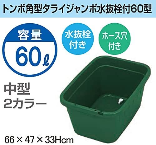 新輝合成 トンボ タライ 60リットル 角型 水抜き栓付き ホース穴付 モスグリーン 幅66×奥行47×高さ33cm 日本製