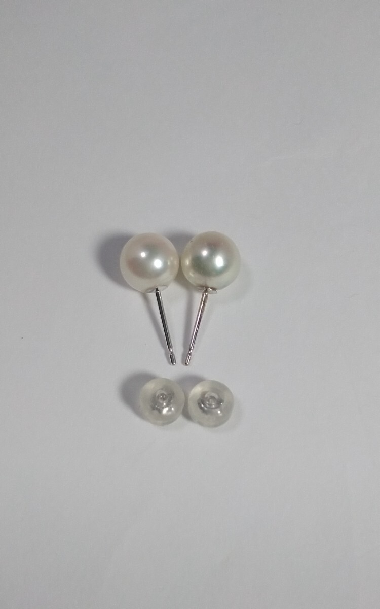 材質 K14ホワイトゴールド アコヤ真珠7.5mm珠 K14WG&シリコン併用キャッチ留め 軸とキャッチにK14WGの刻印有り 重量1.7g(キャッチ含む)