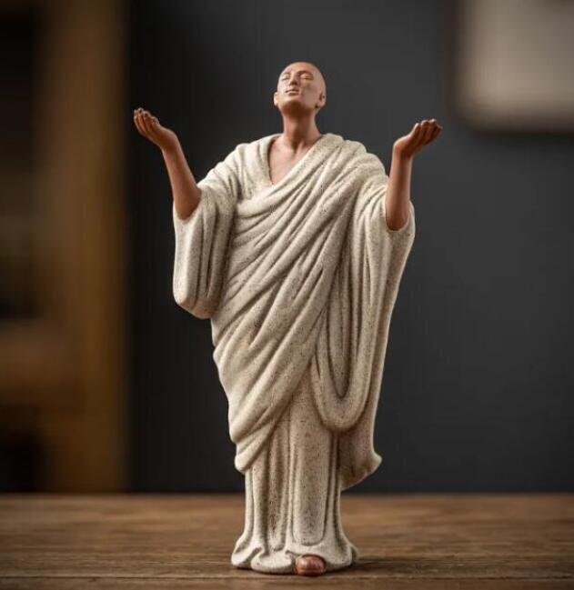 手作り紫砂*小坊主-天に問う*置物高さ約16.7cm