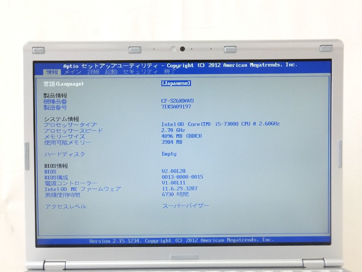 | パナソニック 現状品■Let‘note CF-SZ6(CF-SZ6RDAVS)■Core i5-7300U(第7世代)■4GB(メモリ)■12.1型■BIOS確認済みノートパソコン■③ | |