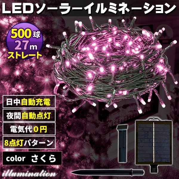 ソーラー イルミネーション 屋外 クリスマス ストレート 屋外用 イルミネーションライト 500球 さくら