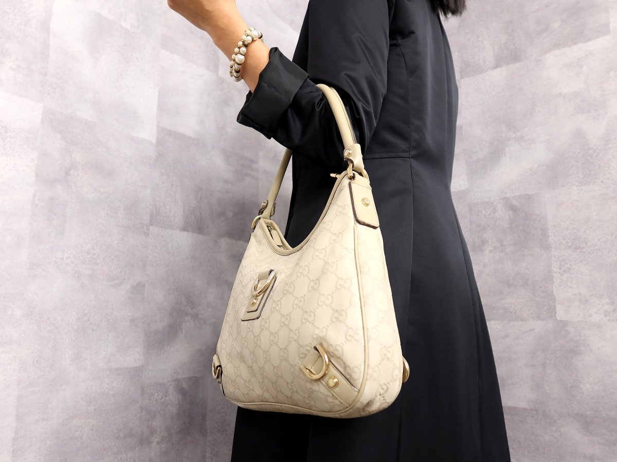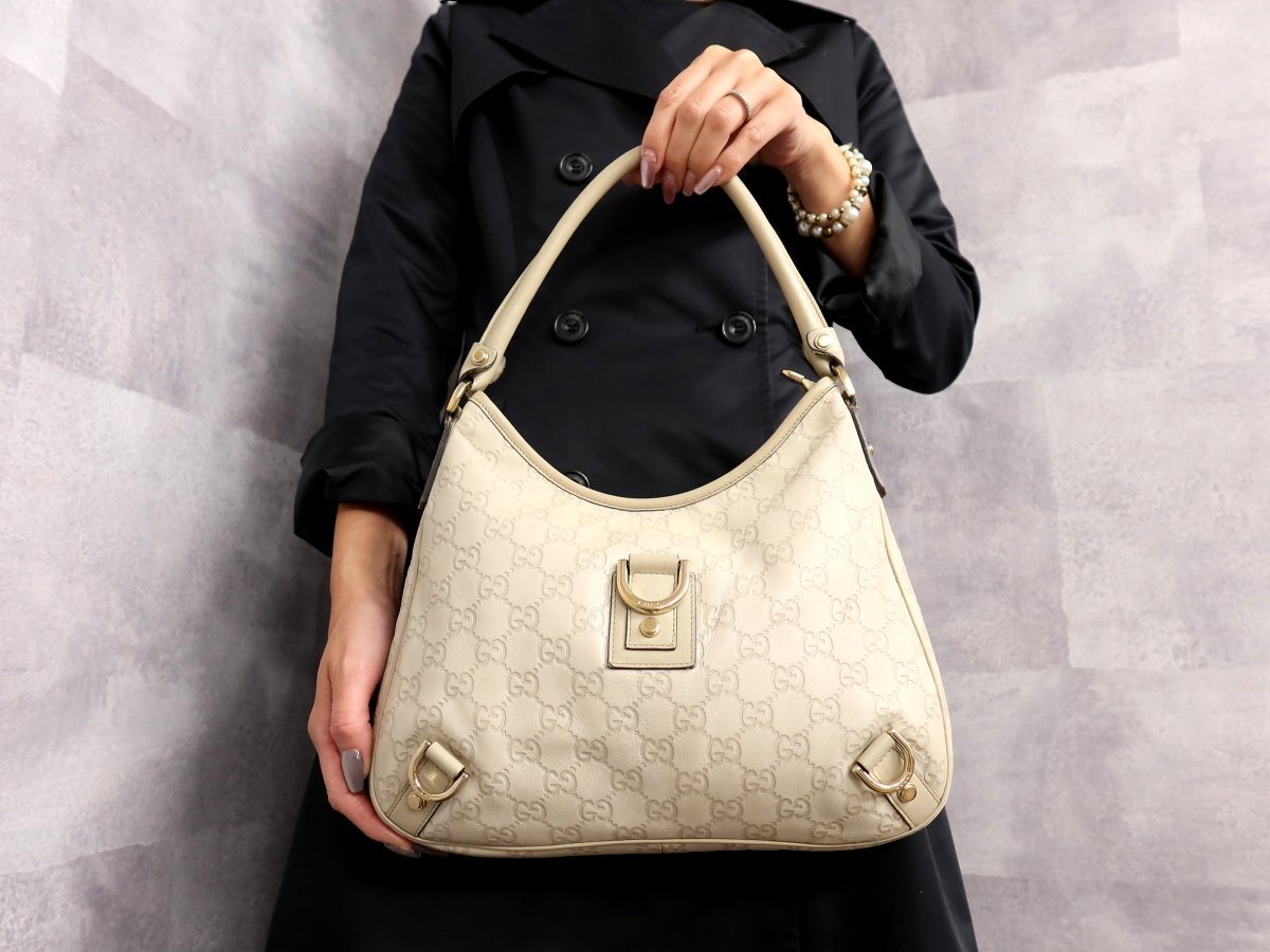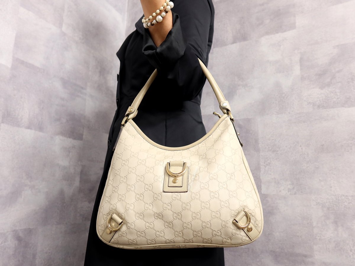 ●美品●GUCCI グッチ●グッチシマ●アビー●カーフ レザー 本革●ハンド バッグ●ベージュ●ゴールド金具●イタリア製●腕掛け●Js62045