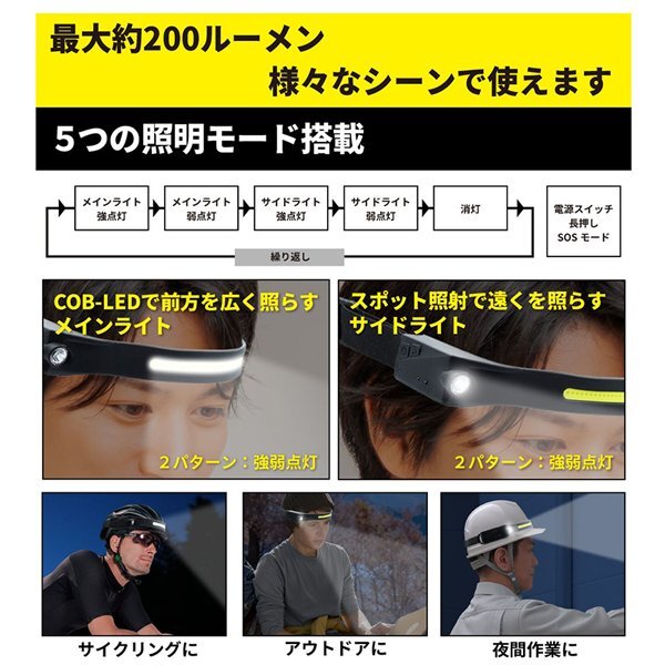 ハンドセンサー搭載 ヘッドライト 最強 COB型 充電式 高輝度 LED ライト 屋外 夜間 作業灯 アウトドア 送料無料 7M◇ ヘッドライトHRN-647