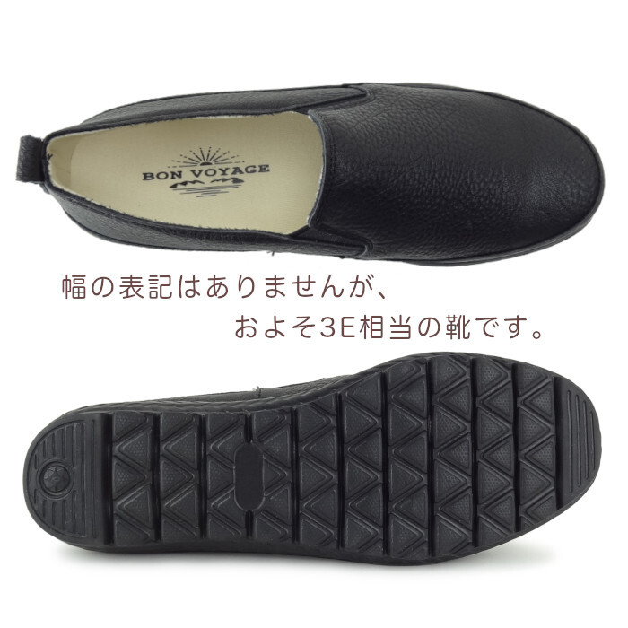 ブランド名:BON VOYAGE 品番:SA70 カラー:ブラック、クロ くろ サイズ:23.0cm 靴の幅:表記はありませんがおよそ3E相当です。 片足重量:約135g(23.5cmで計測した場合) かかと高さ:約3.0cm 素材:合成皮革、合成底 生産国:中国 **このシューズは、特殊な染色方法を用いてるため色落ちすることがあります。 履き口が広めに作られているので足を入れやすいです。ソールの屈曲性や防滑性にも優れている軽い靴なのでご近所などを歩き回る普段履きに最適です。 軽くて履きやすい靴なので毎日のお出かけや散歩やタウンウォーキングなど、ちょっと歩くのにちょうどいい!お誕生日や記念の贈り物、プレゼントなどにも喜ばれると思いますよ! | ||