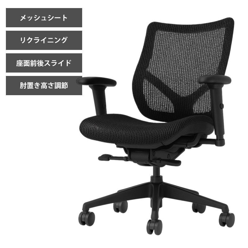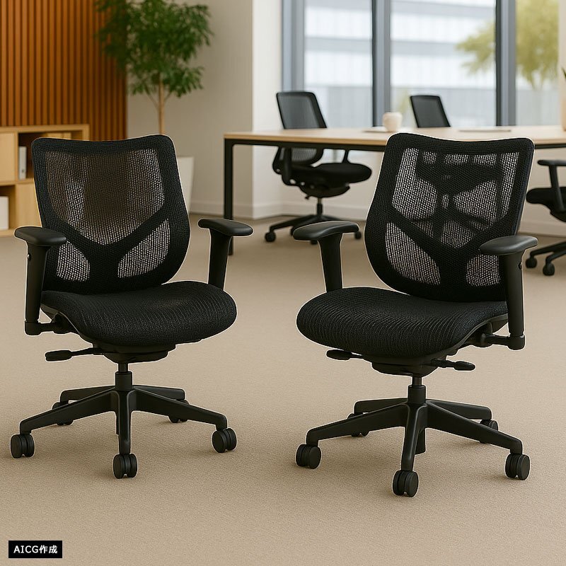 背と座がメッシュ素材の通気性と弾力性のある座り心地