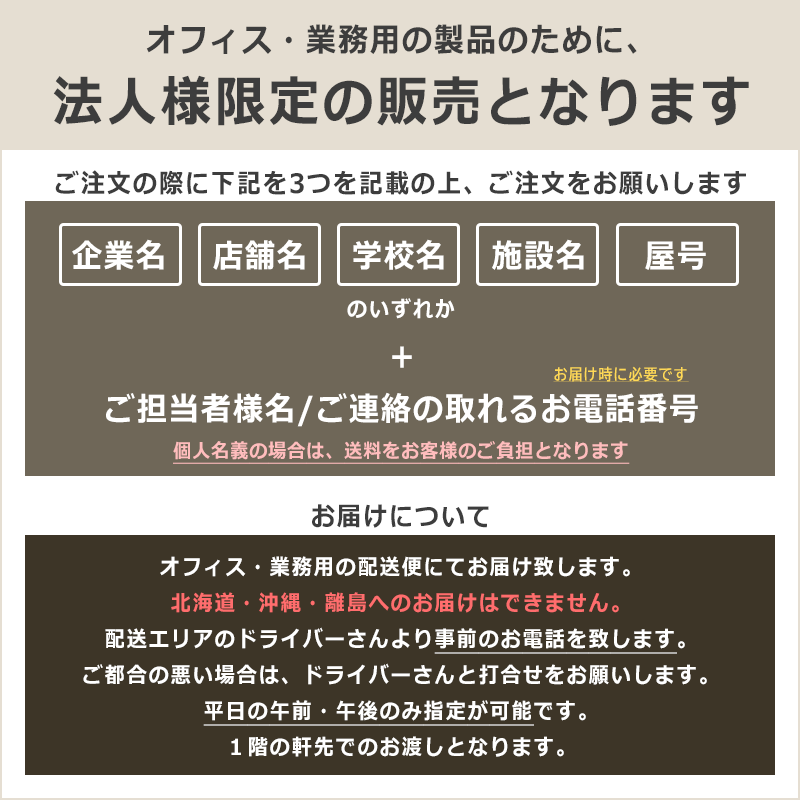 社名、店舗名、屋号のある宛のみ販売・お届けの出品です。