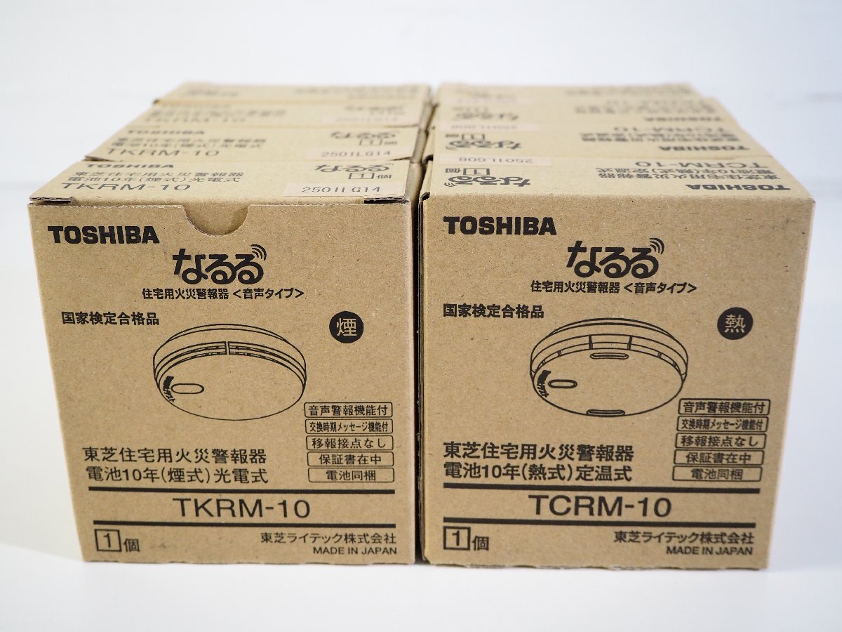| 商品名 | ☆975☆【未使用】 TOSHIBA 住宅用火災警報器 なるる TKRM-10 電池10年(煙式)光電式 ×6 / TCRM-10 電池10年(熱式)定温式 ×2 計8個セット | |