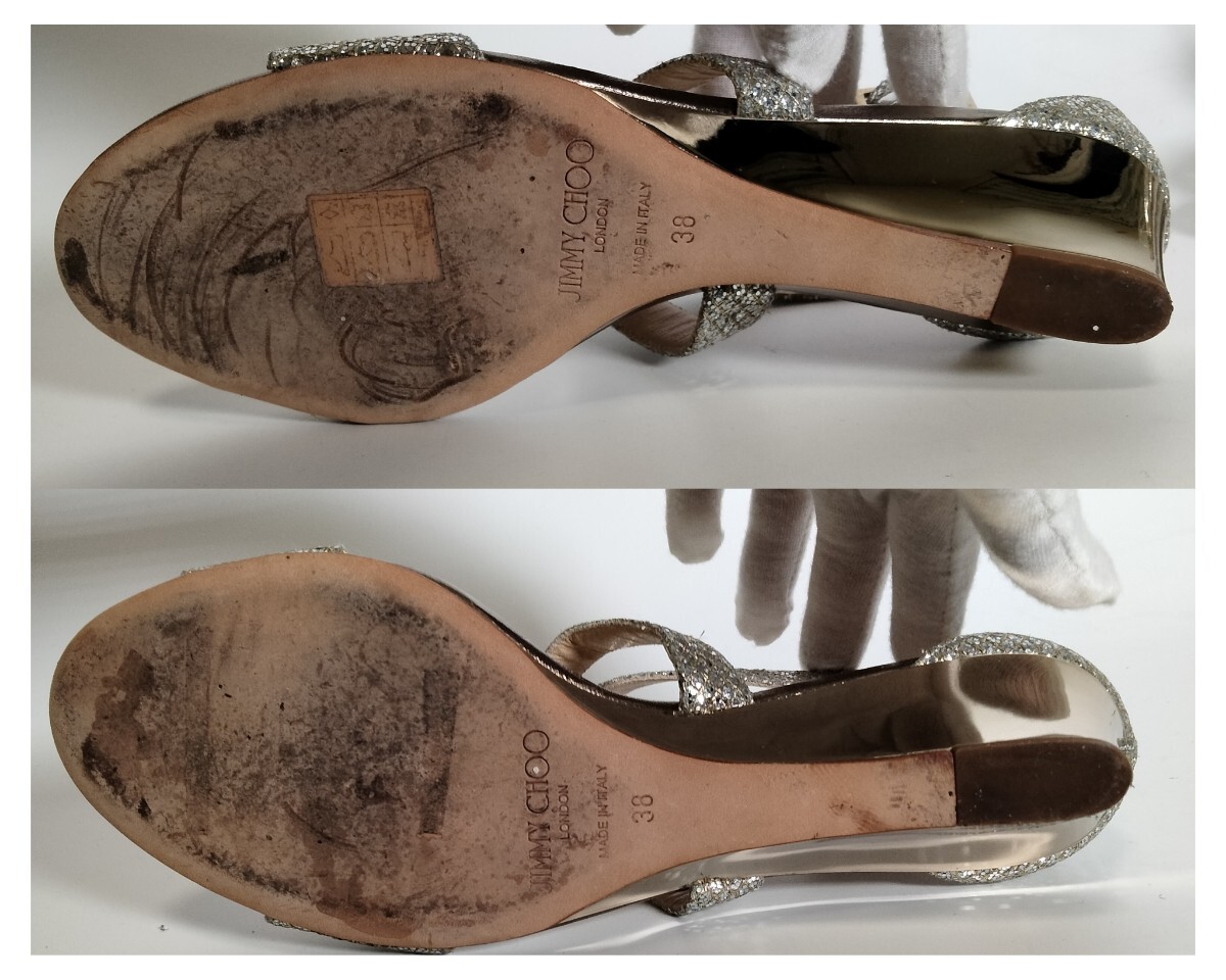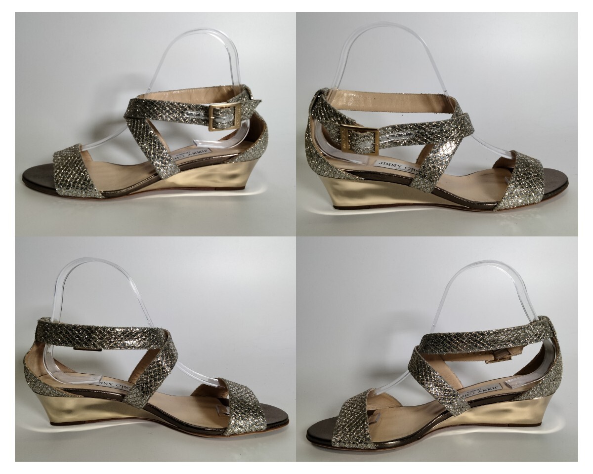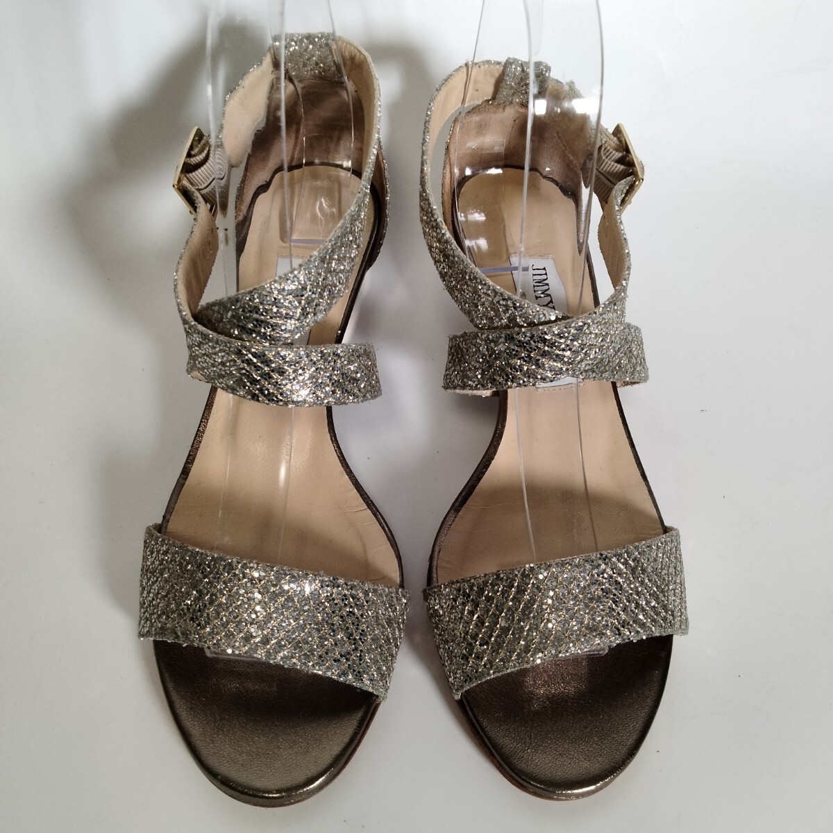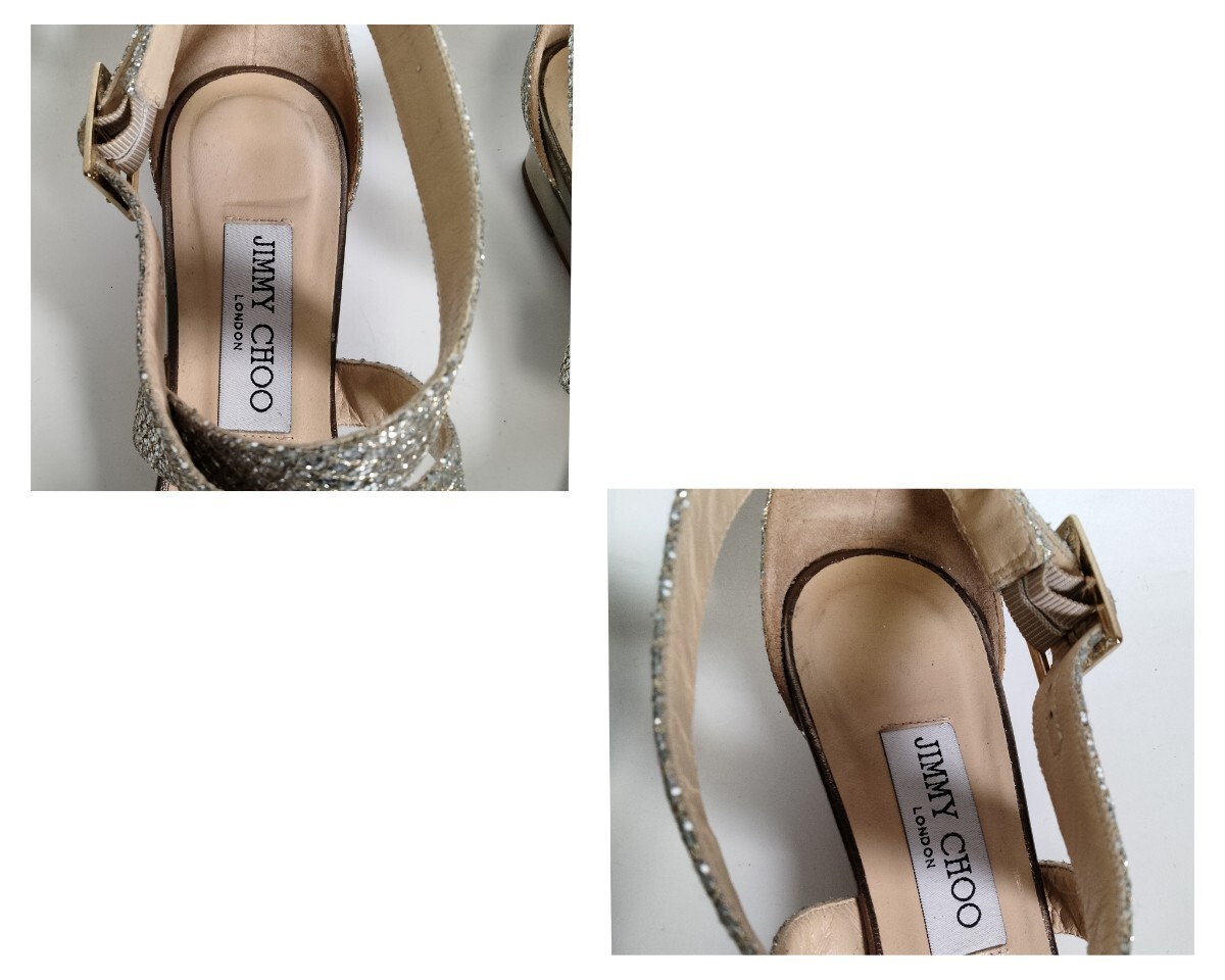 足元を華やかに彩る、JIMMY CHOO ジミーチュウ グリッター ウェッジソール サンダルです。