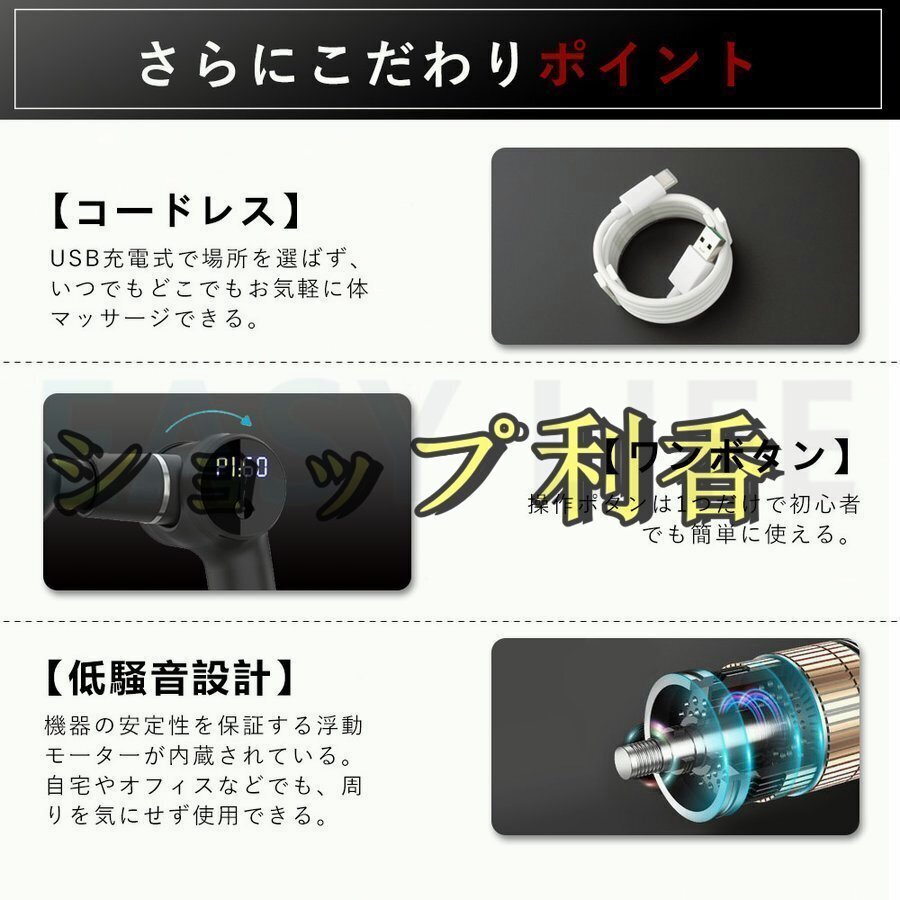 商品説明 商品説明 バッテリー容量:4800mAh電源:USB充電定格電圧:7.4V定格電力:60Wサイズ:110*160*183mm重量:535g使用環境:-10℃?60℃★小型で軽い!ミニマッサージガンはわずか535gで、女性でも片手で使用できます。カバンに入れて、持ち運びに便利です。★4800mAh大容量!