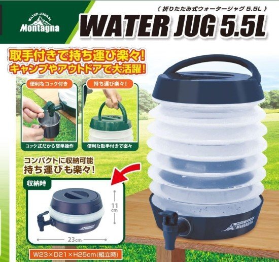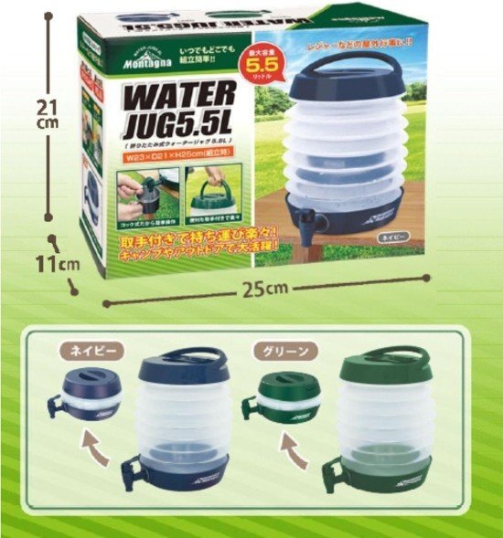 | 折り畳み式 ウォ-タ-ジャグ 5.5L (ネイビ-orグリ-ン)※カラ-ランダム HAC4557 |