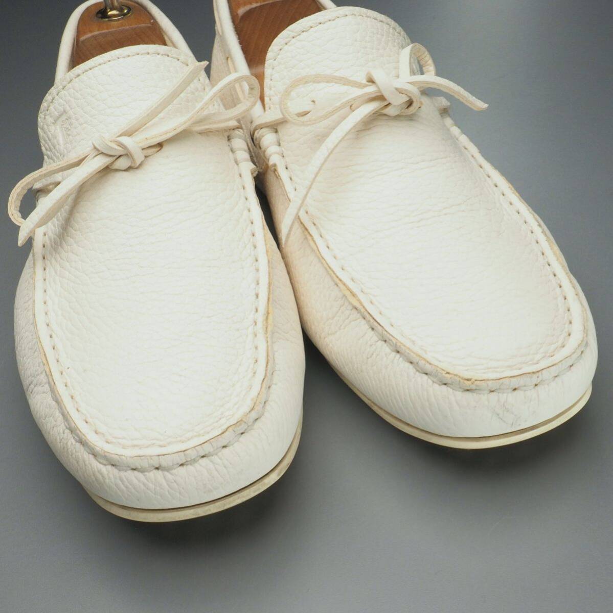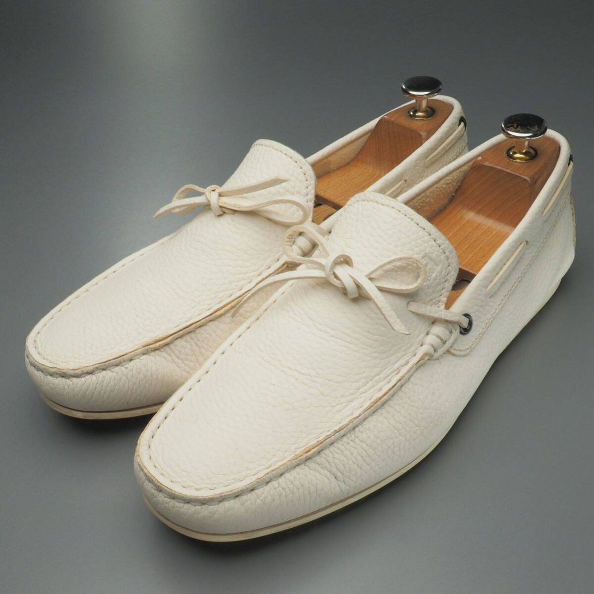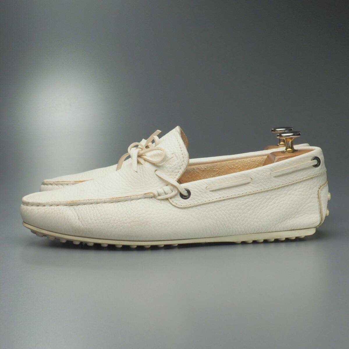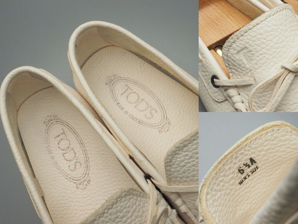 | MI2582//*イタリア製*トッズ/TOD'S*メンズ6.5A/ストリングローファー/レザースリッポン/モカシンシューズ/革靴/白/ホワイト | |||