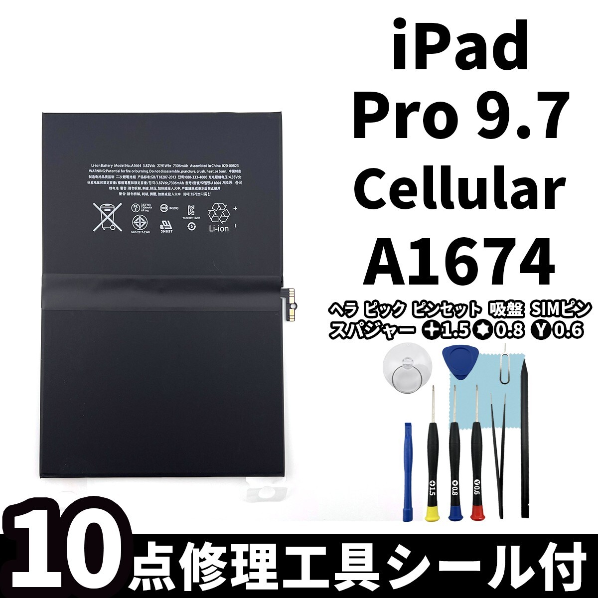 ★iPad Pro 9.7 用 A1674 内蔵バッテリー電池パック交換キット PSE認証 バッテリー交換専用修理工具 専用両面テープ付セット★